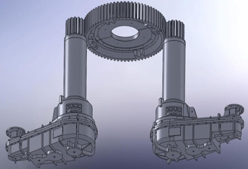 公司是我國較早生產(chǎn)煤氣發(fā)生爐等煤化工設備的企業(yè)。煤化工用齒輪箱主要有爐篦傳動裝置和BGL爐布煤器傳動裝置箱兩種。傳動裝置由減速機、輸出齒輪軸、偏心套組件及填料環(huán)組件等幾部分組成。