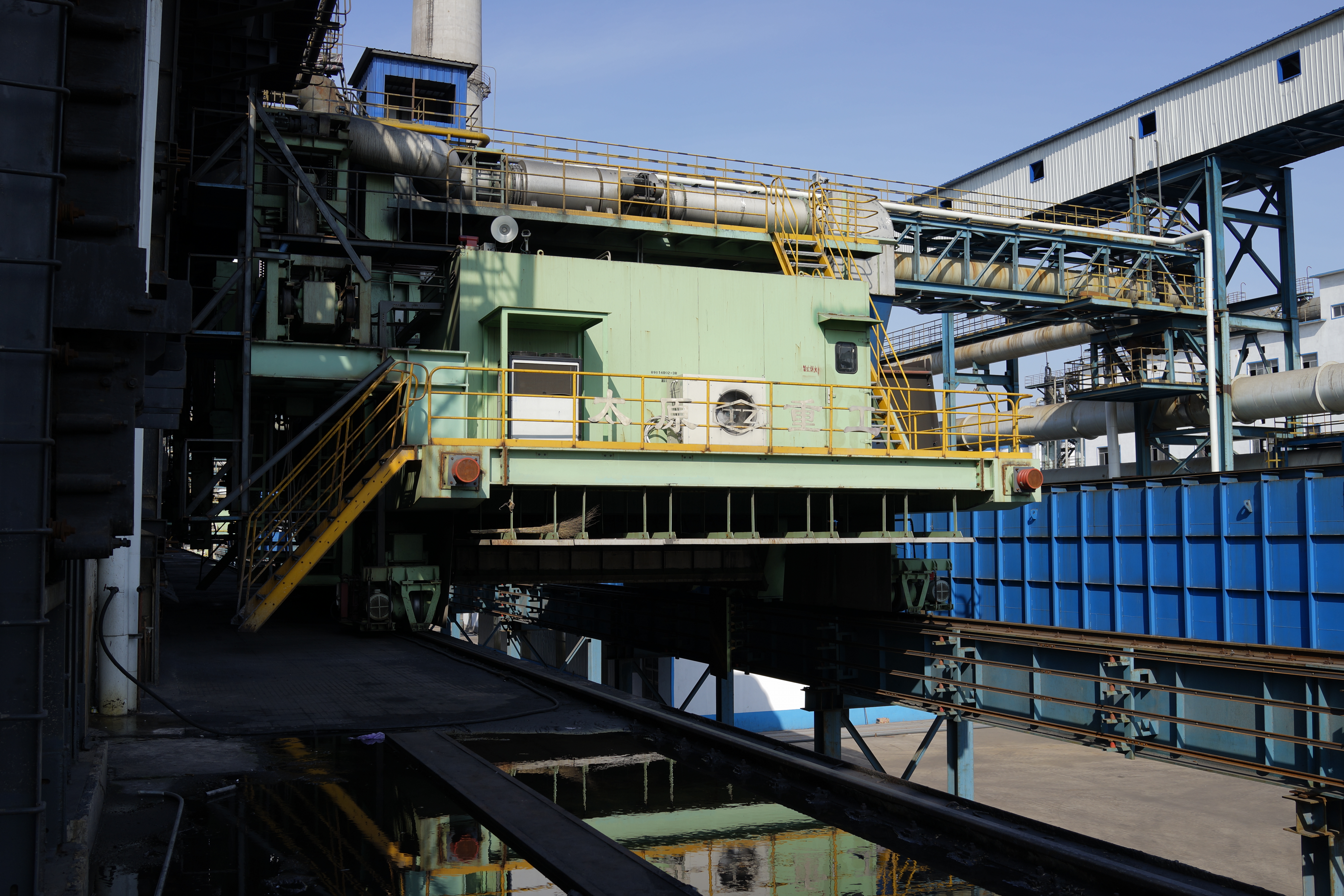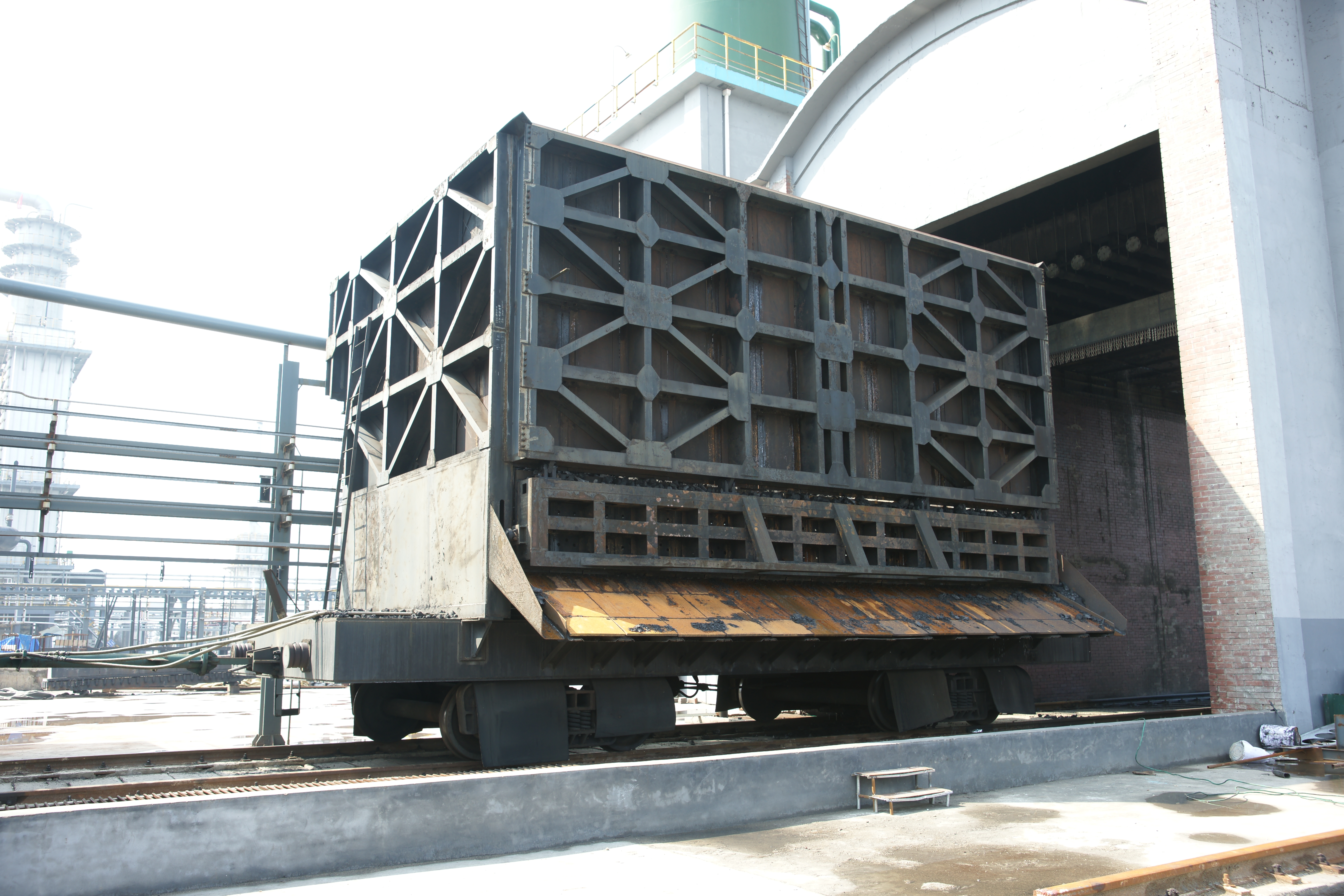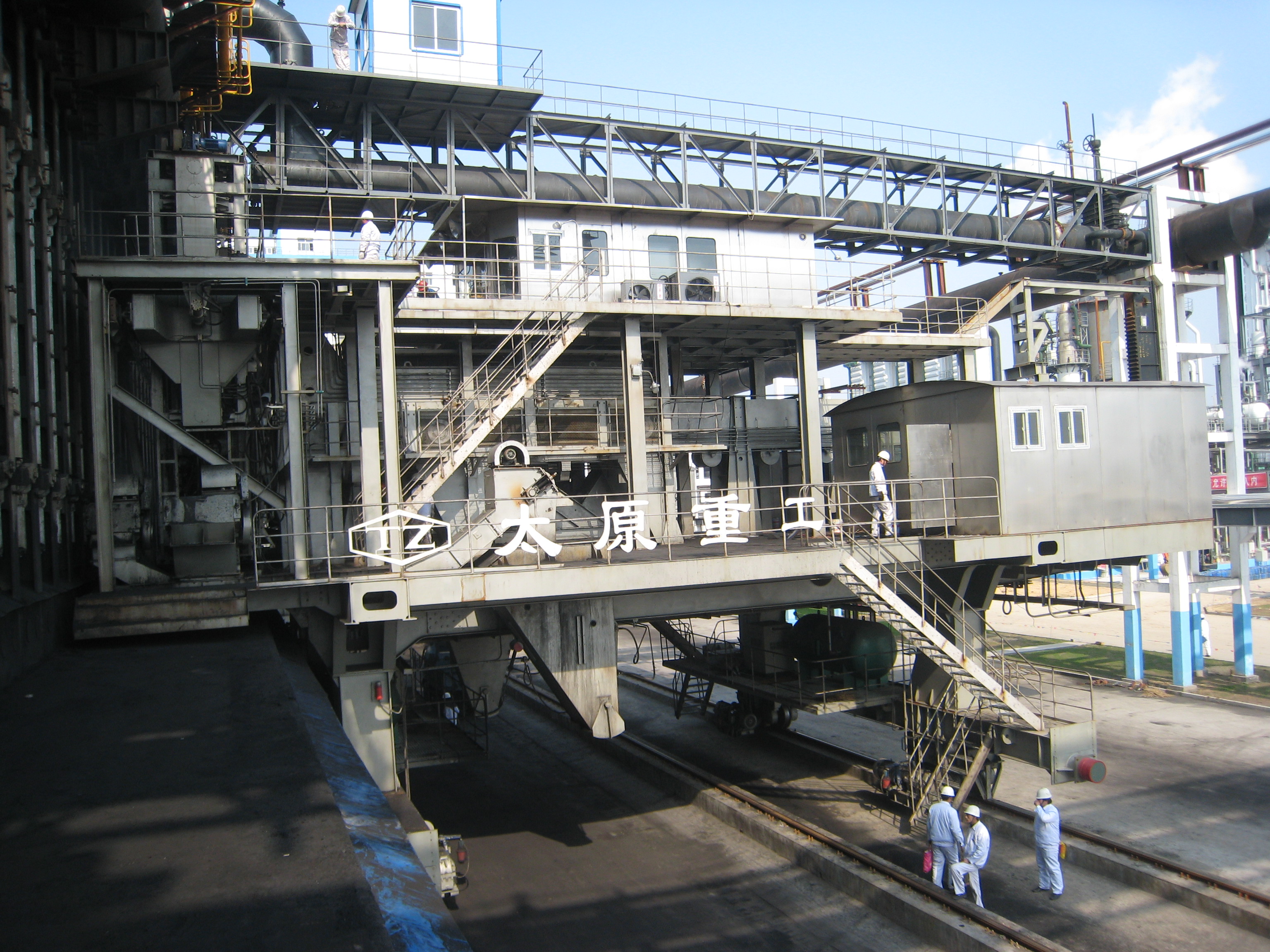搗固型焦爐機械設(shè)備包含煉焦流程的全套機械設(shè)備:給料機完成煤粉由煤塔向裝煤車的轉(zhuǎn)運;搗固機將松散煤粉壓實形成煤餅;裝煤車接收煤餅并將其輸送至炭化室進行煉焦;推焦車將焦炭由炭化室推送至熄焦車/焦罐車;攔焦車完成炭化室與熄焦車/焦罐車的連通;電機車是熄焦車/焦罐車的牽引設(shè)備,完成焦炭由煉焦爐區(qū)到熄焦塔/干熄焦區(qū)的轉(zhuǎn)運;熄焦車接收熾熱焦炭,并在煤塔下完成濕熄焦過程;焦罐車接收焦炭后輸送至干熄焦區(qū)域進行干熄焦區(qū)域進行干熄焦工藝;導煙車負責收集與處理裝煤推焦過程中產(chǎn)生的煙塵;SCP機集搗固機、給料機、裝煤車、推焦車于一體,可實現(xiàn)移動搗固,提高生產(chǎn)效率。