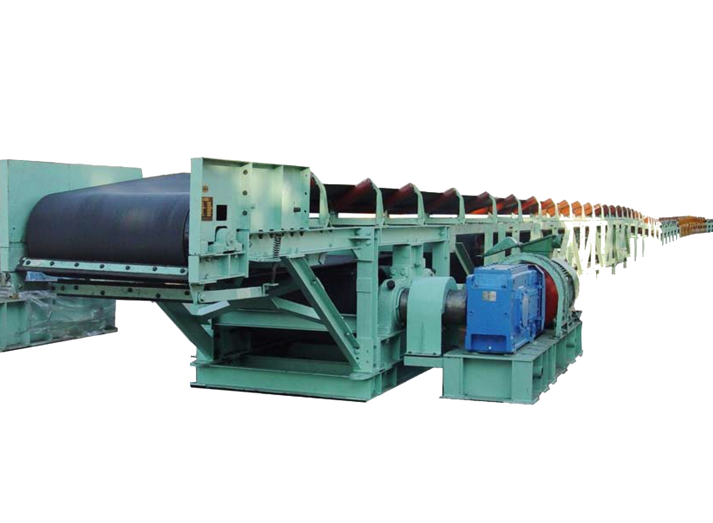 帶式輸送機適用于礦山、化工、冶金和港口碼頭等場合的物料運輸。由單機或多機組合成運輸系統(tǒng)來運輸物料,運輸能力1500t/h~20000t/h的系列帶式輸送機可滿足不同露天礦山用戶的需求。