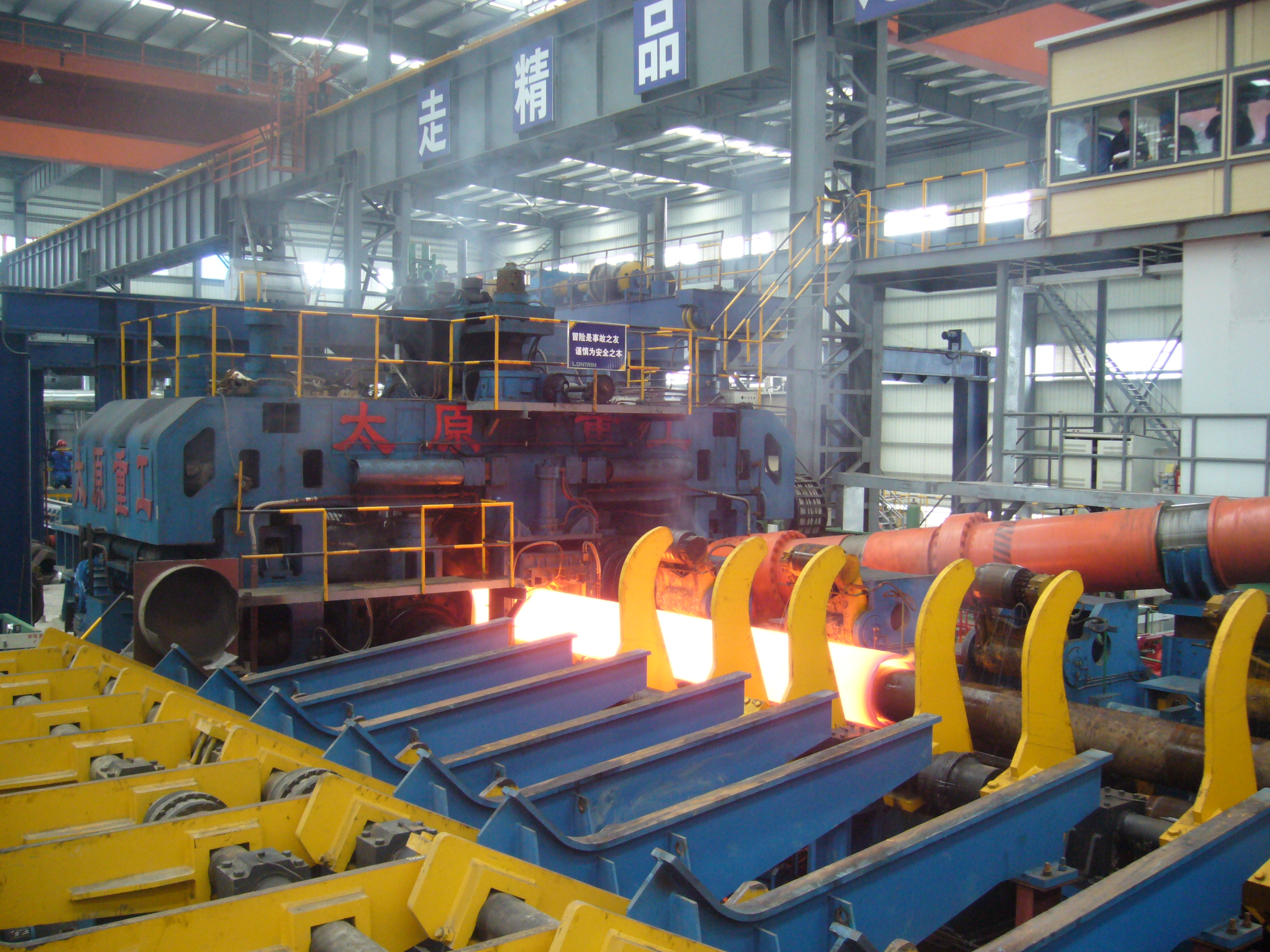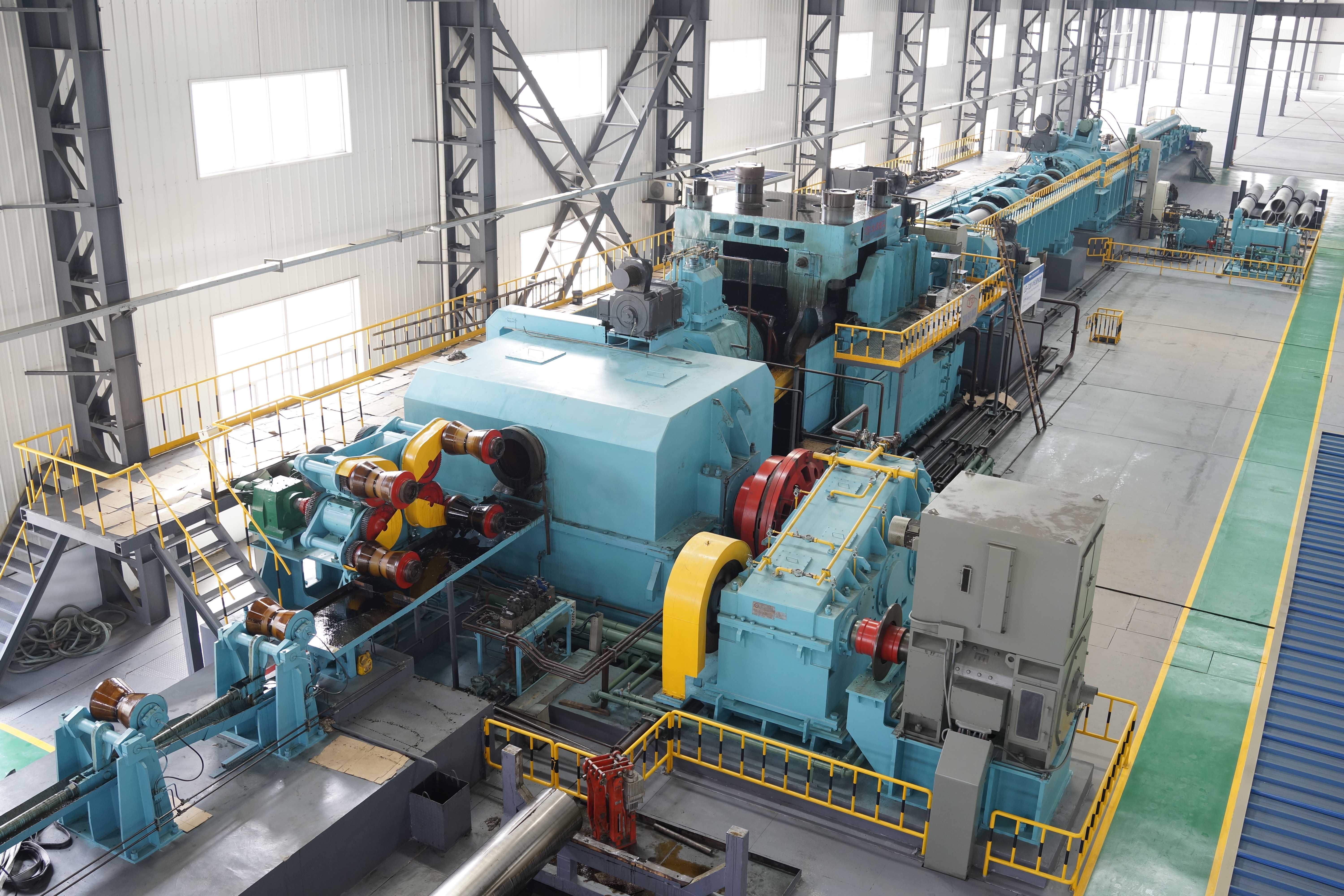 太重早在上世紀(jì)90年代開(kāi)始自主研制開(kāi)發(fā)國(guó)內(nèi)生產(chǎn)大口徑鋼管的Ф2000mm巨龍穿孔設(shè)備,后續(xù)又成功設(shè)計(jì)制造了Ф508、Ф630、Ф720、Ф1000、Ф1200mm大口徑無(wú)縫鋼管生產(chǎn)線。太重設(shè)計(jì)制造的大口徑熱軋無(wú)縫鋼管機(jī)組成套設(shè)備國(guó)內(nèi)市場(chǎng)占有率約95%。