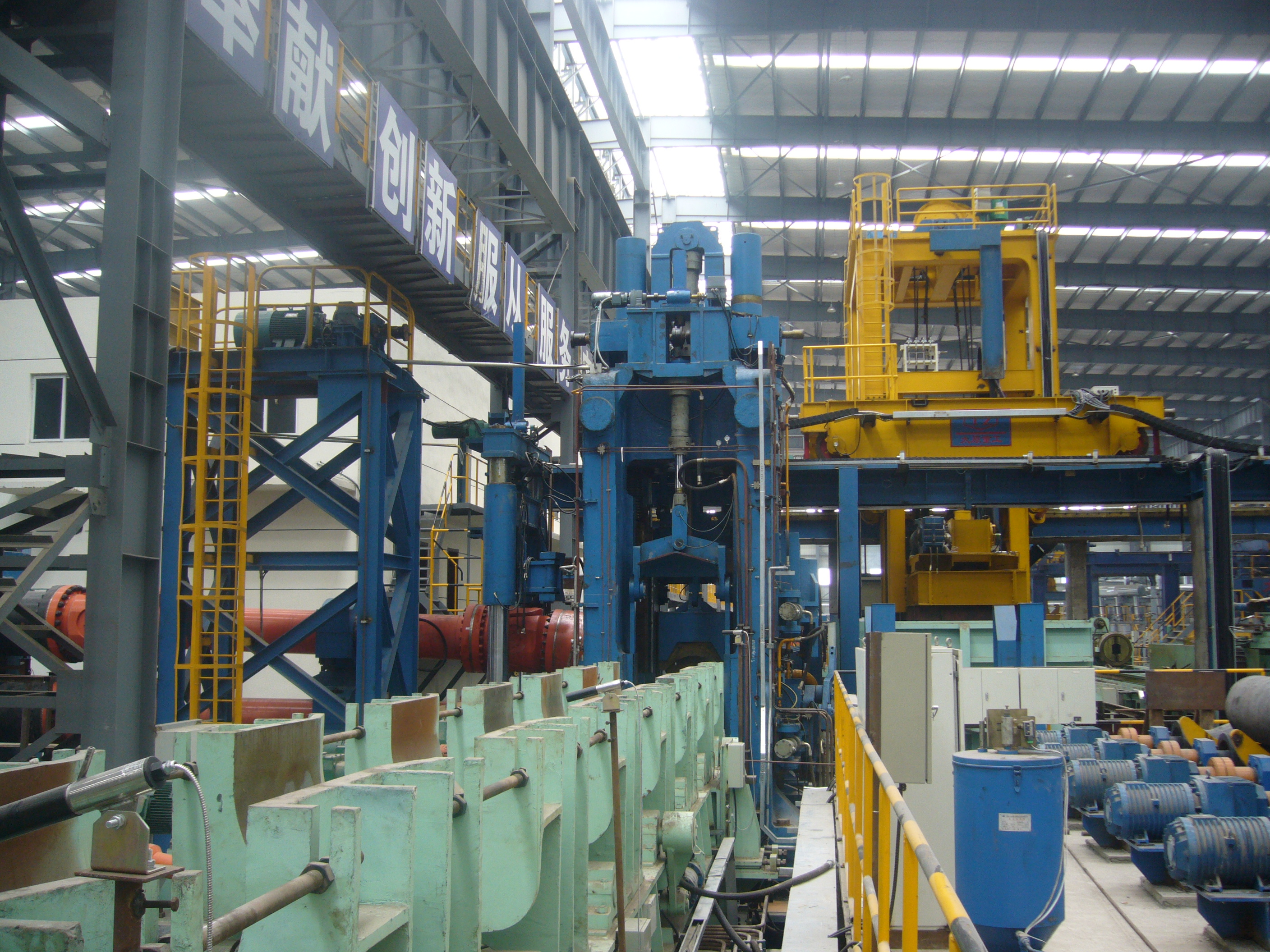 大口徑無(wú)縫鋼管生產(chǎn)成套設(shè)備主要用于生產(chǎn)核電用管、高壓鍋爐管、高壓化肥管、能源用管、氣瓶管、結(jié)構(gòu)用管等多種用途鋼管。機(jī)組穿孔工藝有壓機(jī)壓力穿孔和斜軋穿孔兩種形式,軋管工藝有皮爾格軋制和回轉(zhuǎn)軋制兩種形式,公司設(shè)計(jì)制造的Ф720mm多功能穿軋機(jī)組,實(shí)現(xiàn)了大口徑鋼管生產(chǎn)工藝的一次突破。