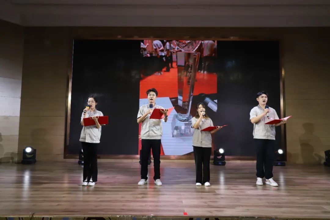 全場(chǎng)活動(dòng)共分為矢志砥初心、激昂正青春、建功新時(shí)代三個(gè)篇章。晚會(huì)在VLOG《一起向未來》短視頻中拉開了帷幕,傳統(tǒng)藝術(shù)三句半《太重新人說太重》展現(xiàn)出新入職大學(xué)生以堅(jiān)定的信念、過硬的本領(lǐng)、擔(dān)當(dāng)?shù)挠職庾V寫太重贊歌的精氣神?!白屛覀兙o跟‘五年三步走’的戰(zhàn)略方向,以青春之名,放飛理想,為輝煌的太重獻(xiàn)熱爭(zhēng)光!”原創(chuàng)詩(shī)朗誦《以太重之名為太重爭(zhēng)光》表述著新入職大學(xué)生的激情與夢(mèng)想,激勵(lì)著太重新青年用奮斗和奉獻(xiàn)圓夢(mèng),共同繪就太重美好的明天。