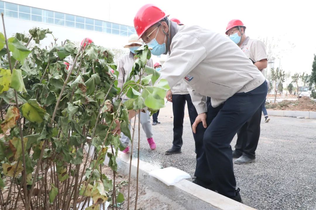 當(dāng)前,廠區(qū)綠化正按照先喬木后灌木再地被的順序超常組織,已有三條道路基本完成主要樹種種植。韓珍堂詳細(xì)了解栽種樹木種類布局,指出要合理規(guī)劃,注重細(xì)節(jié),不僅要打造品種豐富、四季多彩的園區(qū)景觀,也要注重園區(qū)圍墻外環(huán)境治理,營造優(yōu)美舒適的辦公環(huán)境。要全速推進(jìn)項(xiàng)目建設(shè),確保各個環(huán)節(jié)銜接有序,在做好道路清理工作的基礎(chǔ)上加快推進(jìn)綠化工程進(jìn)度,確保在最佳時節(jié)完成樹木種植工作。