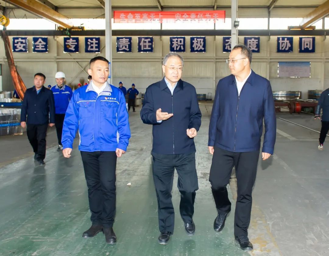 韓珍堂表示,黨的二十大報告提出的“建設(shè)現(xiàn)代化產(chǎn)業(yè)體系”“加快發(fā)展方式綠色轉(zhuǎn)型”等重大戰(zhàn)略,為實體工業(yè)企業(yè)發(fā)展指明了方向、提供了路徑。太重作為“國民經(jīng)濟的開路先鋒”,我省高端裝備制造和風(fēng)電裝備制造兩條產(chǎn)業(yè)鏈的“鏈主”企業(yè),責(zé)任重大、使命光榮,要認真學(xué)習(xí)貫徹黨的二十大精神,深入落實省委同步推進產(chǎn)業(yè)轉(zhuǎn)型和數(shù)字轉(zhuǎn)型“兩個轉(zhuǎn)型”的部署,發(fā)揮科技創(chuàng)新支撐引領(lǐng)作用,加快公司智能化、數(shù)字化轉(zhuǎn)型步伐,著力突破“卡脖子”技術(shù),賦能企業(yè)高質(zhì)量高速度發(fā)展,以制造興實體、以實體強產(chǎn)業(yè)、以產(chǎn)業(yè)促發(fā)展,切實把制造業(yè)做實做優(yōu)做強。定襄縣作為“中國鍛造之鄉(xiāng)”、亞洲最大的法蘭生產(chǎn)基地、世界最大的法蘭出口基地,在風(fēng)電裝備制造產(chǎn)業(yè)鏈鍛件產(chǎn)業(yè)中發(fā)揮著巨大的作用。太重將積極發(fā)揮龍頭帶動作用,在國家雙碳目標(biāo)的引領(lǐng)下,以前瞻性、可靠性、先進性為理念,精準(zhǔn)延鏈補鏈強鏈,以開放姿態(tài)搭建平臺引資引智,瞄準(zhǔn)專利+服務(wù)+技術(shù),進一步與“鏈核”“鏈上”企業(yè)開展戰(zhàn)略、技術(shù)、資本合作,為山西全方位推動高質(zhì)量發(fā)展作出更大貢獻。
