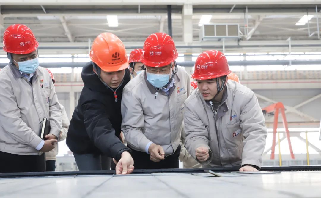 在激光切割機(jī)、拋丸機(jī)、矯平機(jī)等關(guān)鍵設(shè)備前,韓珍堂駐足察看、仔細(xì)詢(xún)問(wèn),并圍繞項(xiàng)目進(jìn)度、工藝流程等提出具體要求。他指出,要切實(shí)做好設(shè)備單機(jī)驗(yàn)收、功能考核、達(dá)產(chǎn)驗(yàn)證方案評(píng)審等工作,不斷提高職工能力本領(lǐng),確保設(shè)備快速掌握、順利接手,同時(shí),統(tǒng)籌協(xié)調(diào)各方資源,充足備品備料,以萬(wàn)全準(zhǔn)備確保萬(wàn)無(wú)一失,全力推動(dòng)達(dá)產(chǎn)達(dá)效。要加快完善產(chǎn)線數(shù)智化進(jìn)程,持續(xù)推動(dòng)大數(shù)據(jù)、人工智能、機(jī)器人、視覺(jué)識(shí)別等先進(jìn)技術(shù)的深度融合,在自動(dòng)化、信息化、智能化方面下真功夫、下實(shí)功夫、下苦功夫,團(tuán)結(jié)協(xié)作打造“燈塔工廠、智能工廠、黑燈工廠”典范。