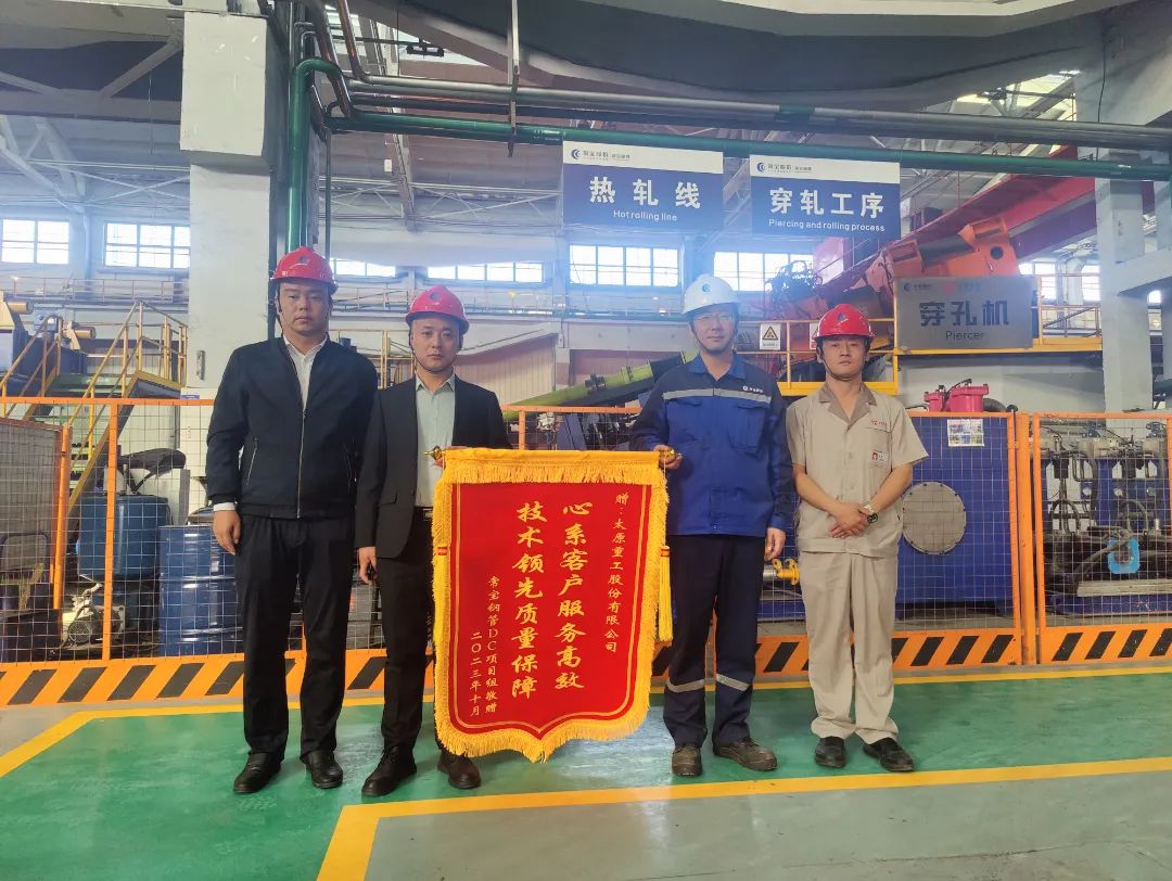 “心系客戶服務(wù)高效 技術(shù)領(lǐng)先質(zhì)量保障”“服務(wù)團隊優(yōu)秀高效 技術(shù)后盾值得信賴”,短短一周,冶金設(shè)備分公司先后收到江蘇常寶鋼管股份有限公司、云南曲靖鋼鐵集團鳳凰鋼鐵有限公司送來的兩面錦旗,每一面錦旗背后,都承載著用戶對太重產(chǎn)品和服務(wù)的高度認可與肯定。