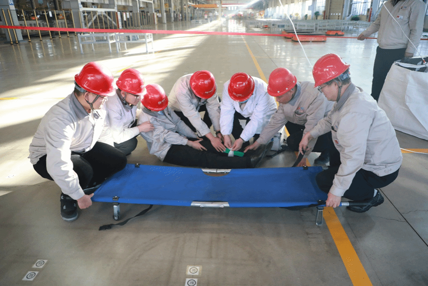 隨著一聲令下,演練正式開始。起重機(jī)械緩緩移動(dòng),在吊運(yùn)重物過程中卻突然脫鉤,導(dǎo)致工作人員腿部受傷。事故發(fā)生后,起重操作人員大聲呼救,并立即向生產(chǎn)負(fù)責(zé)人匯報(bào),負(fù)責(zé)人當(dāng)即啟動(dòng)緊急救援預(yù)案,快速實(shí)施救援。同時(shí),安全管理人員將事故情況迅速上報(bào)。接到警報(bào)后,搶險(xiǎn)救援組成員第一時(shí)間穿戴好安全裝備趕赴現(xiàn)場,利用救援工具,對(duì)受傷人員進(jìn)行緊急救援。醫(yī)療救護(hù)組也隨即趕到現(xiàn)場,對(duì)受傷人員進(jìn)行急救處理。警戒疏散組在事故現(xiàn)場設(shè)立警戒線,維護(hù)現(xiàn)場秩序,對(duì)周邊人員進(jìn)行疏散,確保應(yīng)急救援通道暢通。后勤保障組負(fù)責(zé)控制危險(xiǎn)源、防止起重機(jī)械二次傷害事故發(fā)生,并提供必要的物資支持。最終,經(jīng)過多個(gè)工作組的高效協(xié)同配合,成功處置了這起起重機(jī)械事故,圓滿完成此次演練任務(wù)。