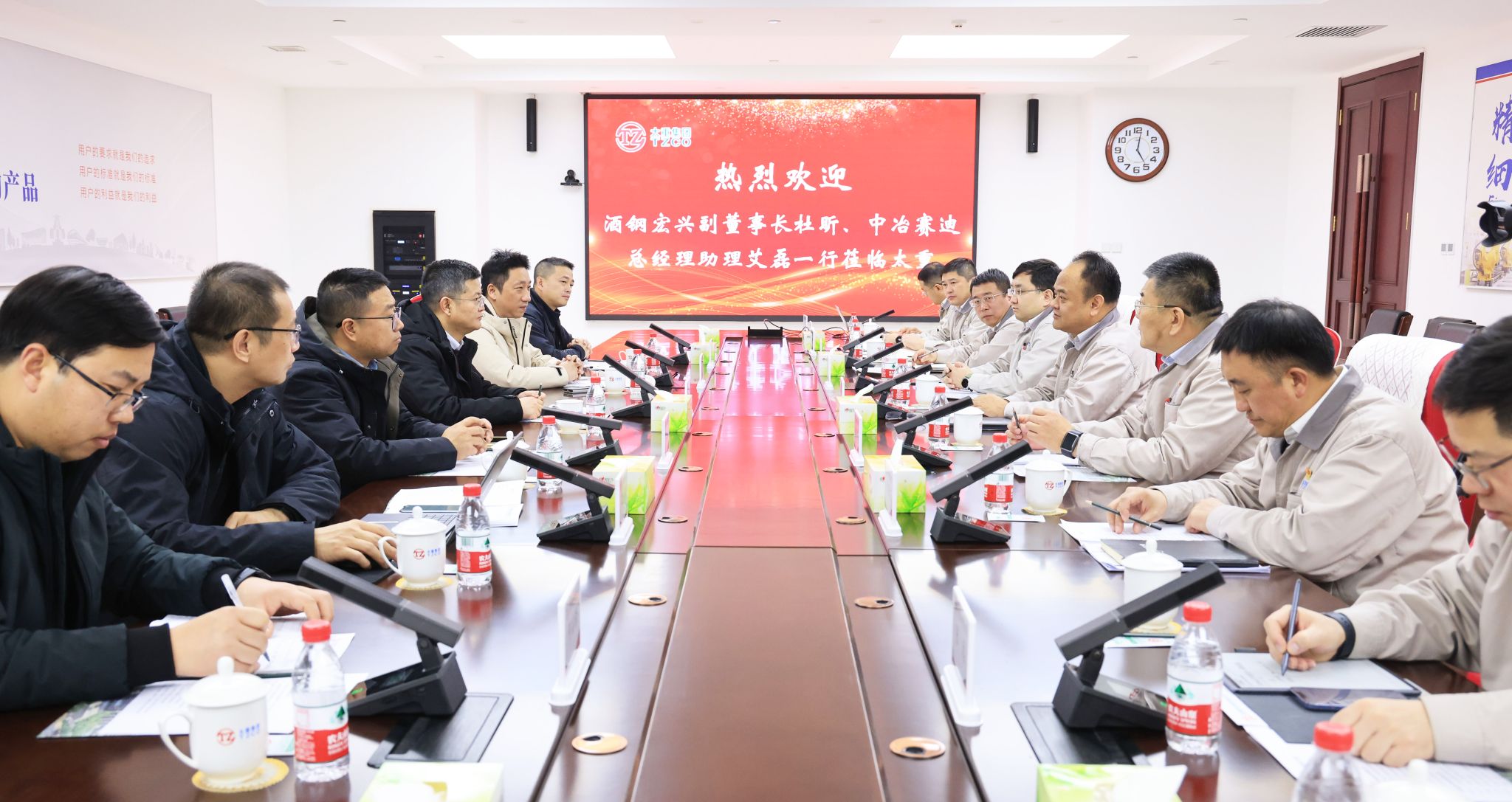 1月28日,甘肅酒鋼集團(tuán)宏興鋼鐵股份有限公司副董事長杜昕、中冶賽迪集團(tuán)有限公司總經(jīng)理助理艾磊一行來集團(tuán)公司友好訪問。集團(tuán)公司黨委副書記、副董事長、總經(jīng)理陶家晉熱情接待了客人一行,就推動項(xiàng)目合作、攜手共謀發(fā)展等事宜進(jìn)行深入交流。