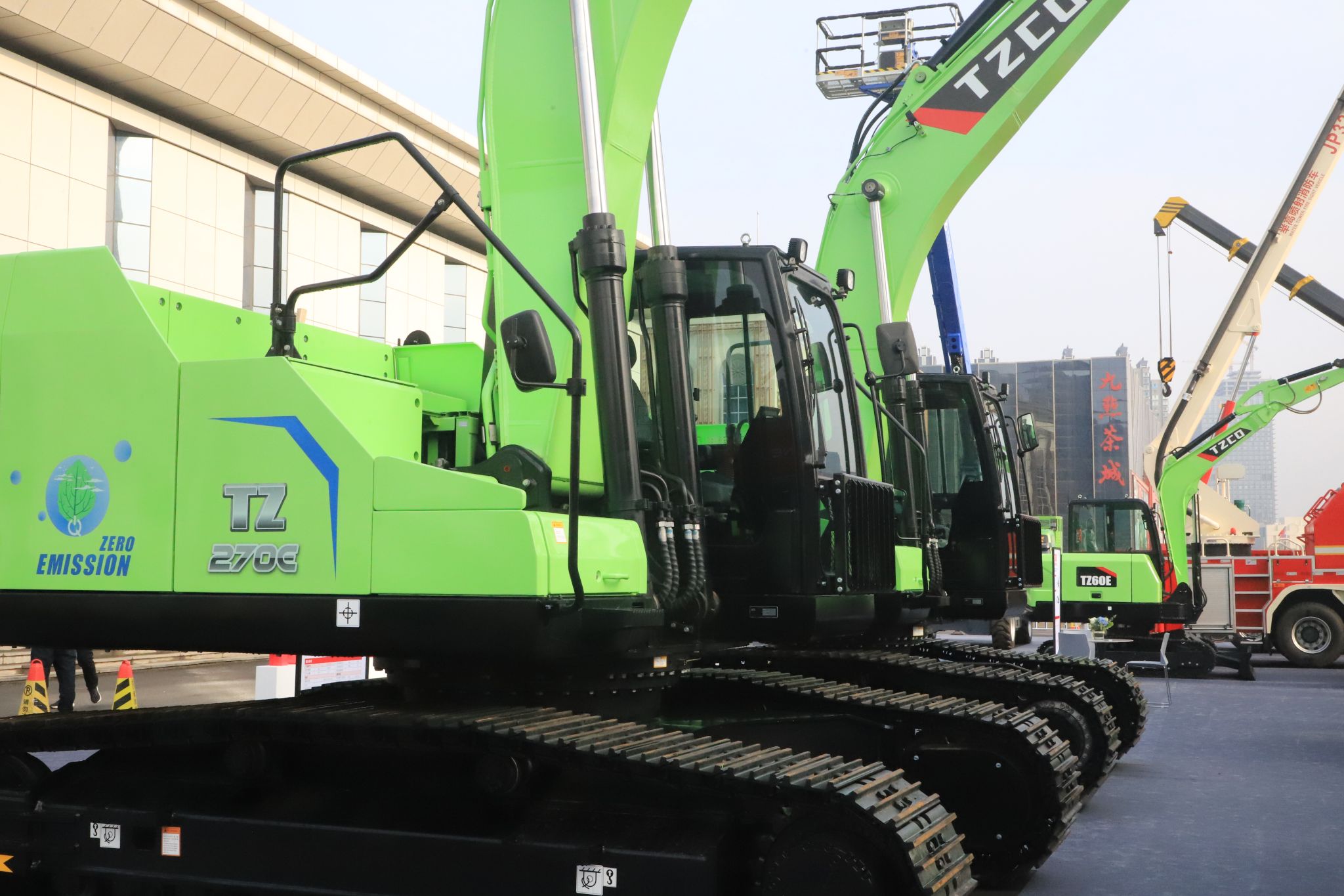 一朝春雨過,萬物皆清明。太重生產(chǎn)的液壓挖掘機、隨車起重機與高空作業(yè)平臺在場館外重磅亮相,成為全場焦點。