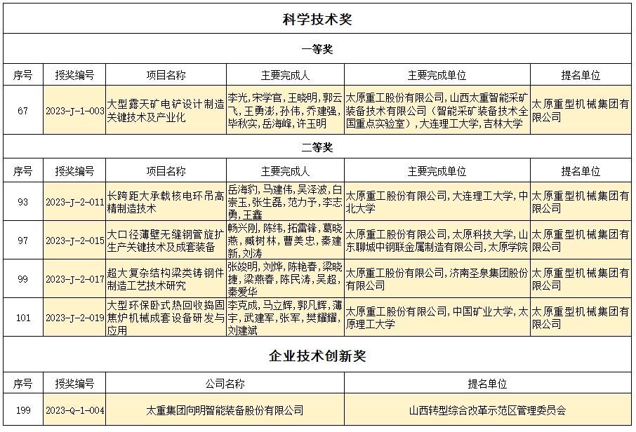 近日,山西省人民政府印發(fā)《關(guān)于2023年度山西省科學(xué)技術(shù)獎勵的決定》,對促進山西省科學(xué)技術(shù)進步和經(jīng)濟社會發(fā)展作出突出貢獻的科學(xué)技術(shù)人員和組織給予獎勵。太重集團5項成果喜獲山西省科學(xué)技術(shù)獎。太重向明榮獲企業(yè)技術(shù)創(chuàng)新獎。