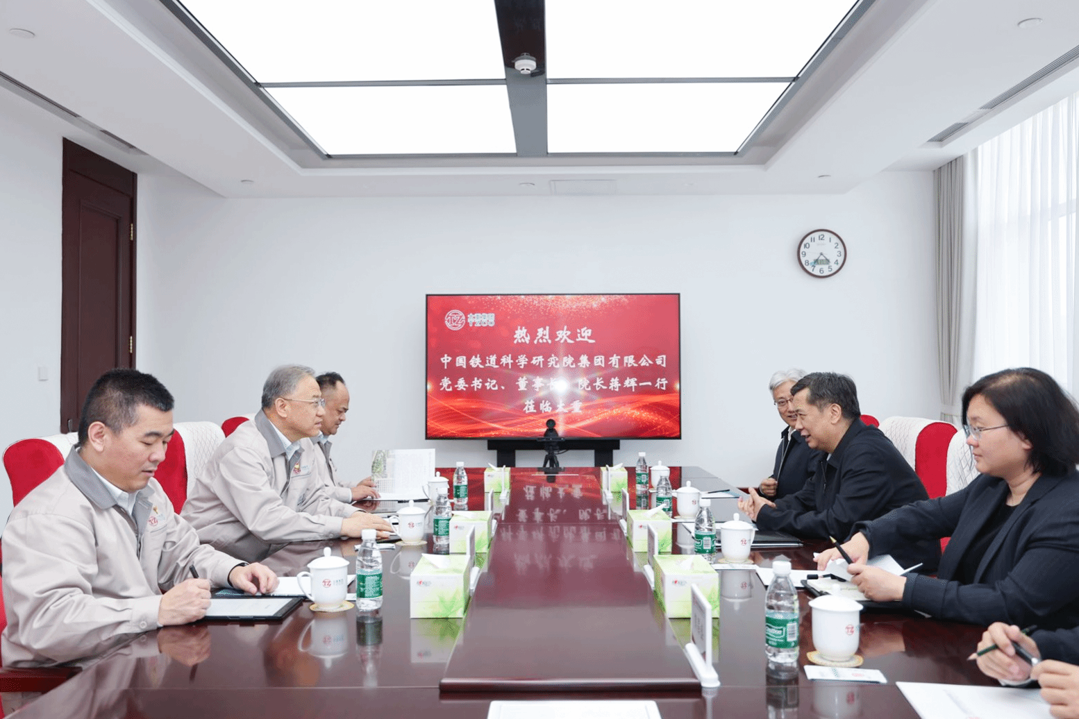 龍城四月天,春色正當(dāng)時(shí)。4月17日,集團(tuán)公司黨委書記、董事長韓珍堂熱情接待了中國鐵道科學(xué)研究院集團(tuán)有限公司黨委書記、董事長、院長蔣輝一行,雙方就進(jìn)一步把握發(fā)展新趨勢、謀求合作新機(jī)遇,合力推動(dòng)我國軌道交通產(chǎn)業(yè)高質(zhì)量發(fā)展進(jìn)行深入交流。
