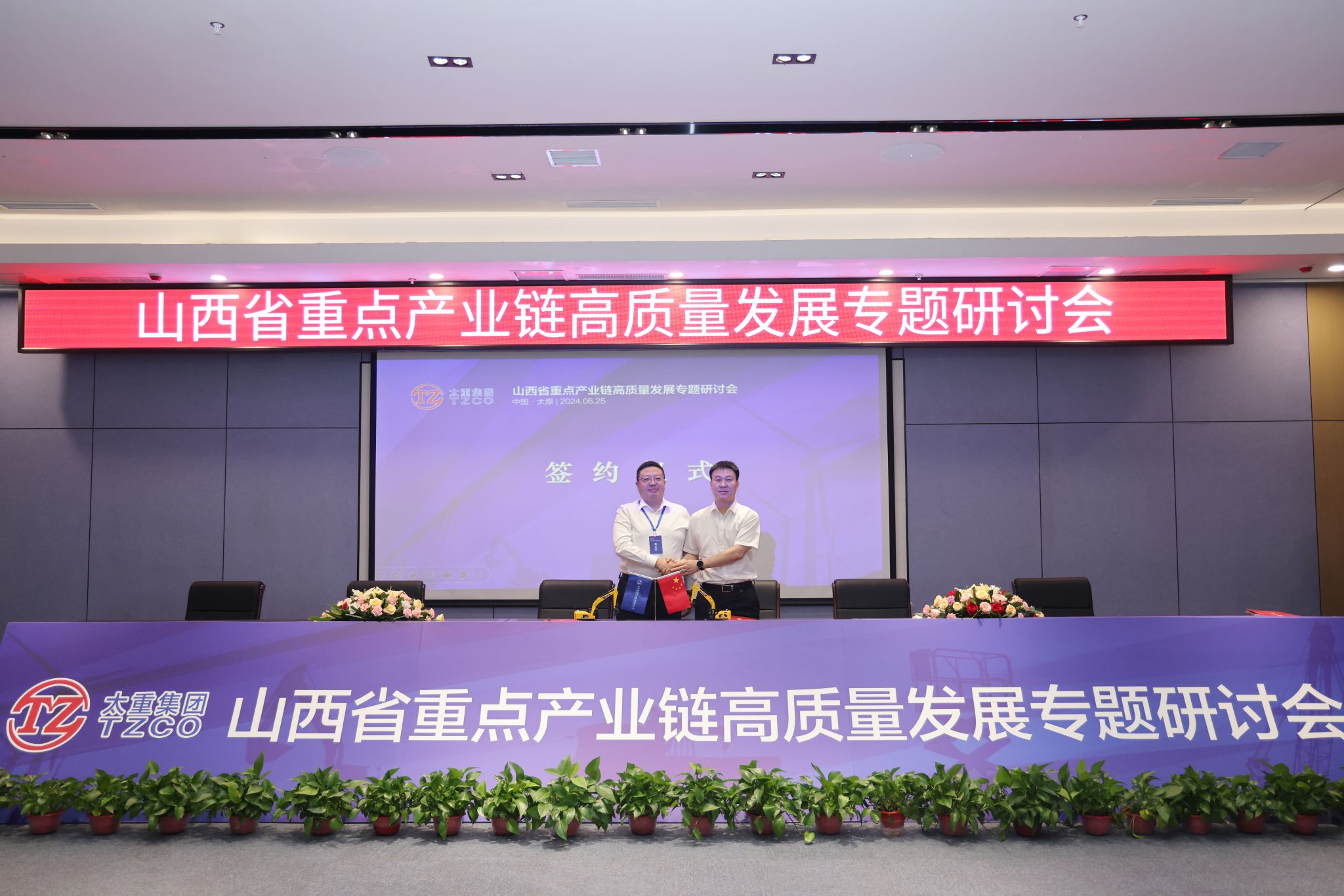 省工信廳一級巡視員張占祥,省能源局二級巡視員楊仁澤,山西轉(zhuǎn)型綜改示范區(qū)黨工委委員、管委會副主任陳曦及相關(guān)單位負責人參加會議。集團公司黨委副書記、副董事長、總經(jīng)理陶家晉,副總經(jīng)理韓肖重參加會議。2022年5月27日,太重被授予全省高端裝備制造產(chǎn)業(yè)和風電裝備產(chǎn)業(yè)鏈“鏈主”企業(yè)。兩年多來,太重勇?lián)半p鏈主”企業(yè)使命責任,不斷強鏈、補鏈、延鏈,進一步強化鏈上企業(yè)之間的良性互動,積極引入頭部企業(yè)入晉開展戰(zhàn)略合作,“雙鏈主”龍頭作用持續(xù)顯現(xiàn),引領(lǐng)帶動全省裝備制造業(yè)實現(xiàn)高質(zhì)量發(fā)展。張占祥對會議的召開表示熱烈祝賀,提出三點建議。要把握大勢,搶抓機遇,做大做強裝備制造業(yè)。依托山西省高端裝備制造(工程機械)產(chǎn)業(yè)聯(lián)盟和風電裝備產(chǎn)業(yè)聯(lián)盟,不斷加強優(yōu)勢互補,共同打造雙千億級產(chǎn)業(yè)鏈。要充分發(fā)揮“政府+鏈主+園區(qū)”招商合力,結(jié)合產(chǎn)業(yè)布局規(guī)劃,精準鎖定招商目標,力爭在上中游環(huán)節(jié)補齊短板。要創(chuàng)新驅(qū)動,做到技高一籌,搶占戰(zhàn)略制高點,帶動產(chǎn)業(yè)鏈整體競爭力不斷提升。政府部門和企業(yè)要加強合作、凝心聚力、共謀發(fā)展,努力使工程機械產(chǎn)業(yè)和風電產(chǎn)業(yè)成為推動我省工業(yè)高質(zhì)量發(fā)展、奮進“兩個基本實現(xiàn)”目標的成長性產(chǎn)業(yè)。楊仁澤認為本次研討會接地氣、重實效,他表示,各有關(guān)企業(yè)要緊抓政策機遇、市場機遇,推動產(chǎn)業(yè)鏈做大做強。要深化協(xié)作,推動產(chǎn)業(yè)鏈集群化發(fā)展,在供應(yīng)鏈、創(chuàng)新鏈、人才鏈上創(chuàng)新合作模式,形成你中有我、我中有你的命運共同體。要強鏈補鏈,提升產(chǎn)業(yè)鏈綜合競爭力,吸引外部優(yōu)秀企業(yè)來晉投資設(shè)廠,省能源局也將積極做好服務(wù),幫助企業(yè)用好用足支持政策,持續(xù)構(gòu)建更加完整的產(chǎn)業(yè)體系。陳曦向各位嘉賓表示熱烈歡迎,對實現(xiàn)綜改區(qū)全方位轉(zhuǎn)型、高質(zhì)量發(fā)展提出三點希望。一是強化服務(wù),吸引產(chǎn)業(yè)鏈企業(yè)入駐。充分發(fā)揮綜改區(qū)全省轉(zhuǎn)型發(fā)展的排頭兵作用,強化“政府-企業(yè)-聯(lián)盟”良性互動,創(chuàng)優(yōu)營商環(huán)境,讓企業(yè)愿意來、留得住、能發(fā)展。二是強化創(chuàng)新,突破產(chǎn)業(yè)鏈核心技術(shù)。發(fā)揮產(chǎn)業(yè)聯(lián)盟牽頭作用,突破一批關(guān)鍵核心技術(shù),堅定不移把產(chǎn)業(yè)鏈做強做優(yōu)做大。三是深化合作,實現(xiàn)產(chǎn)業(yè)鏈共建共贏。綜改區(qū)將發(fā)揮主戰(zhàn)場主引擎作用,在政策引導、資金投入、市場開拓、要素保障,協(xié)調(diào)服務(wù)等方面提供支持和服務(wù),為我省制造業(yè)振興升級貢獻力量。陶家晉指出,此次研討會建立了一個開放的平臺,讓更多的企業(yè)家認識太重、了解太重,通過這個平臺,全面深入與太重合作。未來,太重將聚焦推進新型工業(yè)化關(guān)鍵任務(wù),充分發(fā)揮“雙鏈主”作用,努力建設(shè)具有國際一流競爭力的現(xiàn)代智能裝備制造企業(yè),爭當建設(shè)現(xiàn)代新國企的踐行者、推進新型工業(yè)化的主力軍、發(fā)展新質(zhì)生產(chǎn)力的排頭兵、實現(xiàn)中國式現(xiàn)代化的貢獻者。