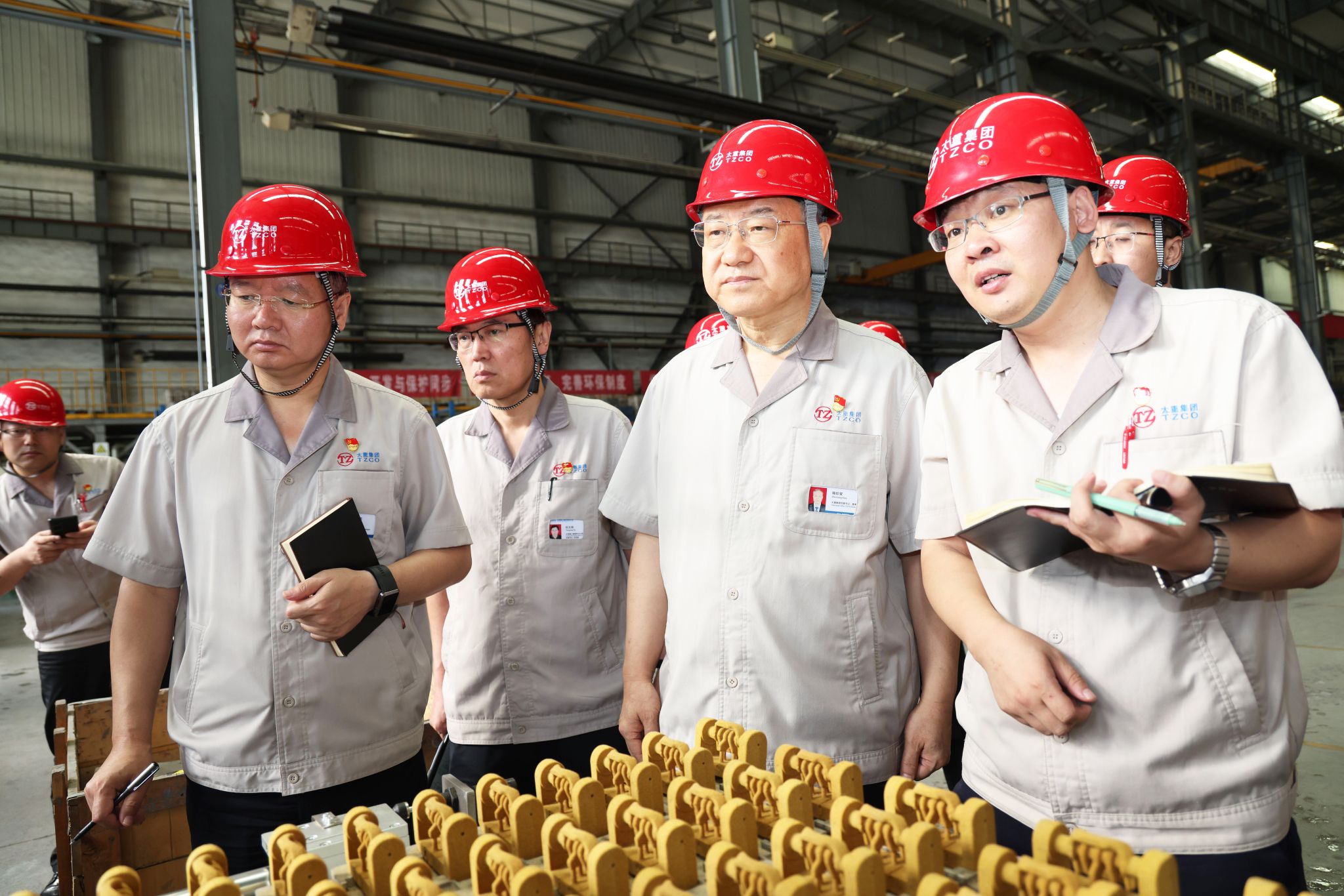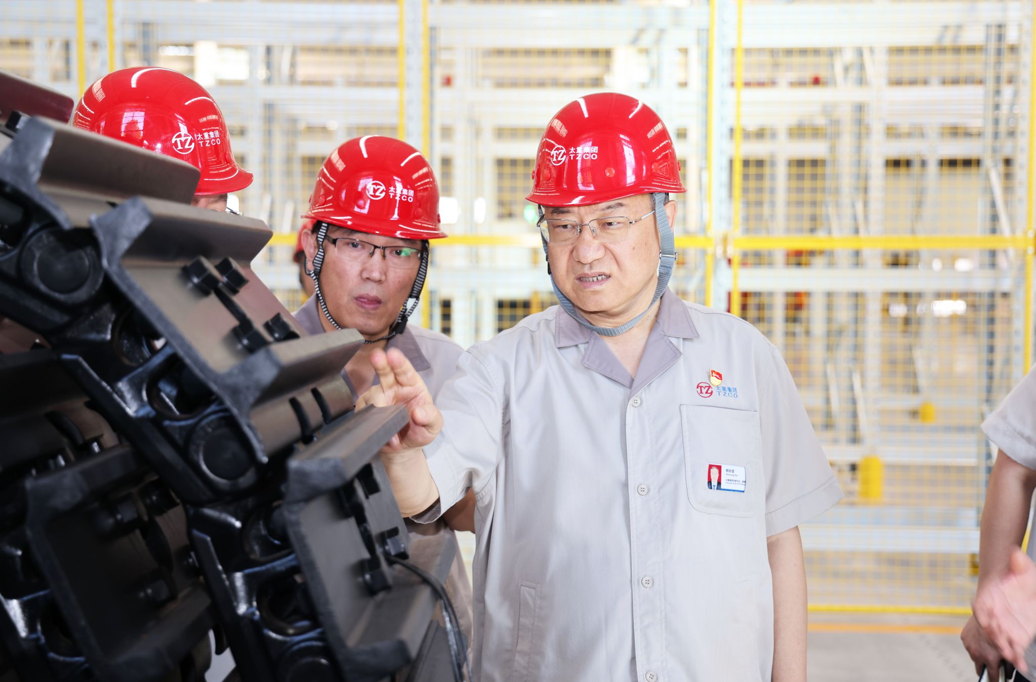 “四輪一帶”項目立足于公司工程挖掘機的自主配套需求,是強化產業(yè)鏈配套能力的重要舉措。步入車間,明亮整潔的環(huán)境令人耳目一新,自動上料、自動組裝、自動壓裝,這條數字化產線正在釋放強勁動能,智能制造加速“進化”。聚焦4-75立方米礦用挖掘機和0.8-200噸級全系列工程挖掘機的廣泛應用場景,韓珍堂在自主生產的履帶板和熱處理產線前頻頻駐足,與技術人員探討生產細節(jié)、分析技術難點堵點、針對性提出改進措施,他說,熱處理工藝是機械制造行業(yè)中提升產品性能、可靠性和使用壽命的關鍵環(huán)節(jié),要對各環(huán)節(jié)進行細致剖析、認真研討,充分釋放產能、保質保量完成生產任務,助力公司產品駛向全球,叫響太重品牌。