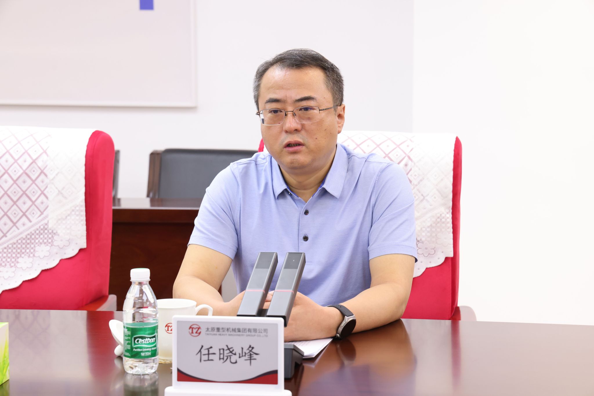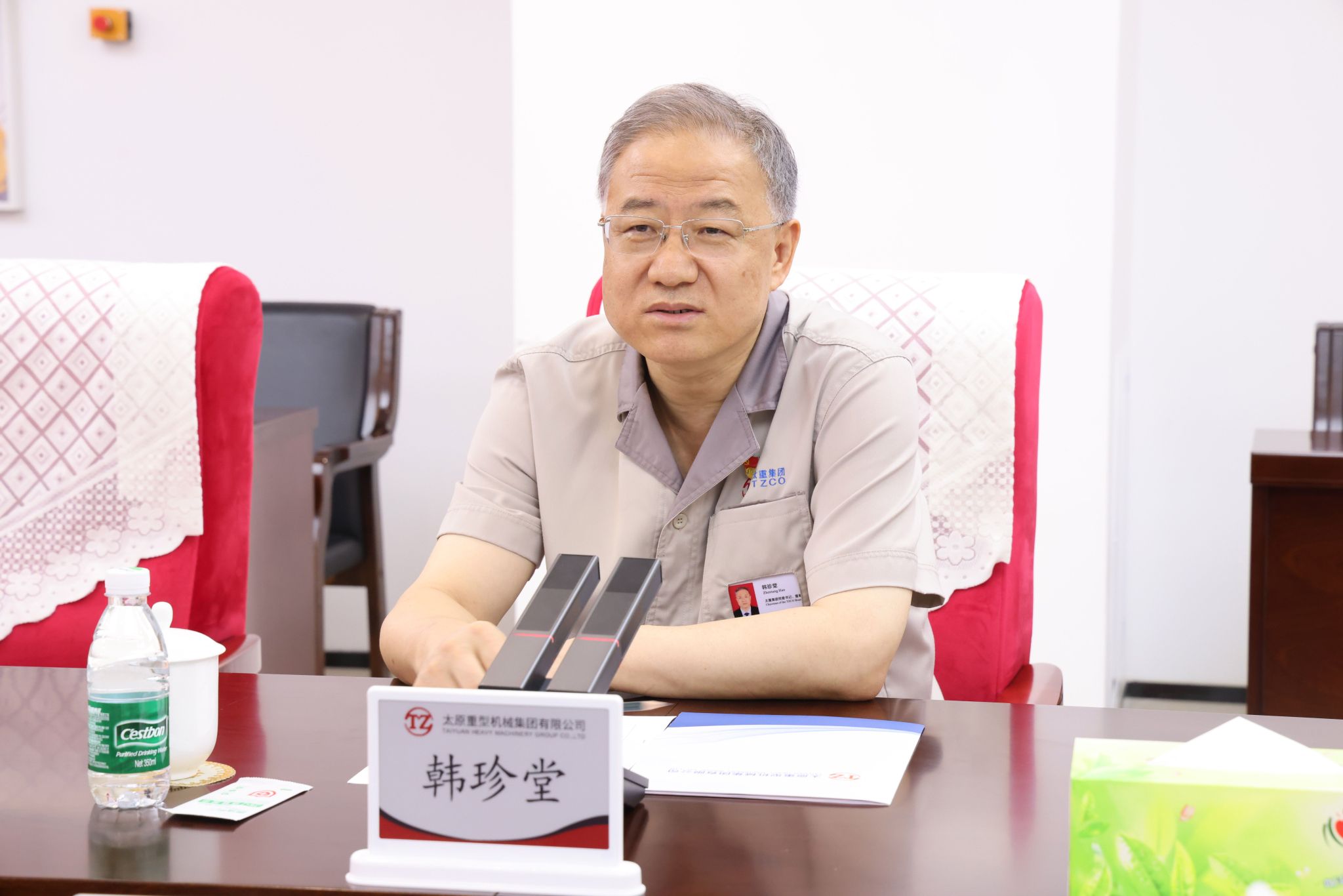 韓珍堂對客人一行的到來表示熱烈歡迎,對山西農(nóng)商聯(lián)合銀行長期以來的大力支持和幫助表示衷心感謝,并簡要介紹了公司的發(fā)展歷程、產(chǎn)品種類、產(chǎn)業(yè)布局、科技創(chuàng)新等方面的情況。他說,太重是新中國自行設(shè)計建造的第一座重型機器廠,累計創(chuàng)造了500多項中國和世界第一,為國家裝備制造業(yè)作出了突出貢獻。深化改革以來,太重在省委、省政府的大力支持下進行了氣勢如虹的改革、創(chuàng)新和發(fā)展,圍繞落實新型工業(yè)化要求,以“高端化、智能化、綠色化、國產(chǎn)化”為產(chǎn)品定位,打造了“3+5+3”特色產(chǎn)品體系,公司制造能力、研發(fā)實力、產(chǎn)品實力都取得了長足進步,形成了“三個全球唯一”。作為全省轉(zhuǎn)型升級的重點項目,太重智能高端裝備產(chǎn)業(yè)園區(qū)歷時19個月建成投產(chǎn),獲評“國家級智能制造示范工廠”,同時建設(shè)了世界上單一工廠規(guī)模最大、工序最全的挖掘機智慧工廠,形成了“一總部、多園區(qū)”產(chǎn)業(yè)布局。公司以科技創(chuàng)新為引領(lǐng),加大研發(fā)投入力度,依托全國重點實驗室和國家級企業(yè)技術(shù)中心,通過產(chǎn)學研用深度融合,實現(xiàn)創(chuàng)新能力的持續(xù)提升。作為地方金融主力軍,山西農(nóng)商聯(lián)合銀行與太重有著深厚的合作基礎(chǔ)和廣闊的合作前景,希望加強交流溝通,搭建銀企合作新橋梁,為推動山西經(jīng)濟高質(zhì)量發(fā)展貢獻更大力量。