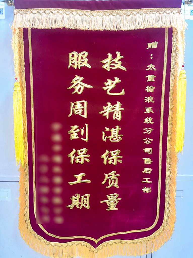近日,太重榆液接連收到用戶送來的錦旗與表揚(yáng)信,“旗”表謝意,“紙”短情長,為太重服務(wù)高頻點(diǎn)贊,表達(dá)對(duì)太重的信任和贊許。這不僅僅是對(duì)太重專業(yè)團(tuán)隊(duì)技術(shù)能力和嚴(yán)謹(jǐn)工作態(tài)度的肯定,更展現(xiàn)出公司踐行“用戶至上”核心價(jià)值觀的務(wù)實(shí)成果。