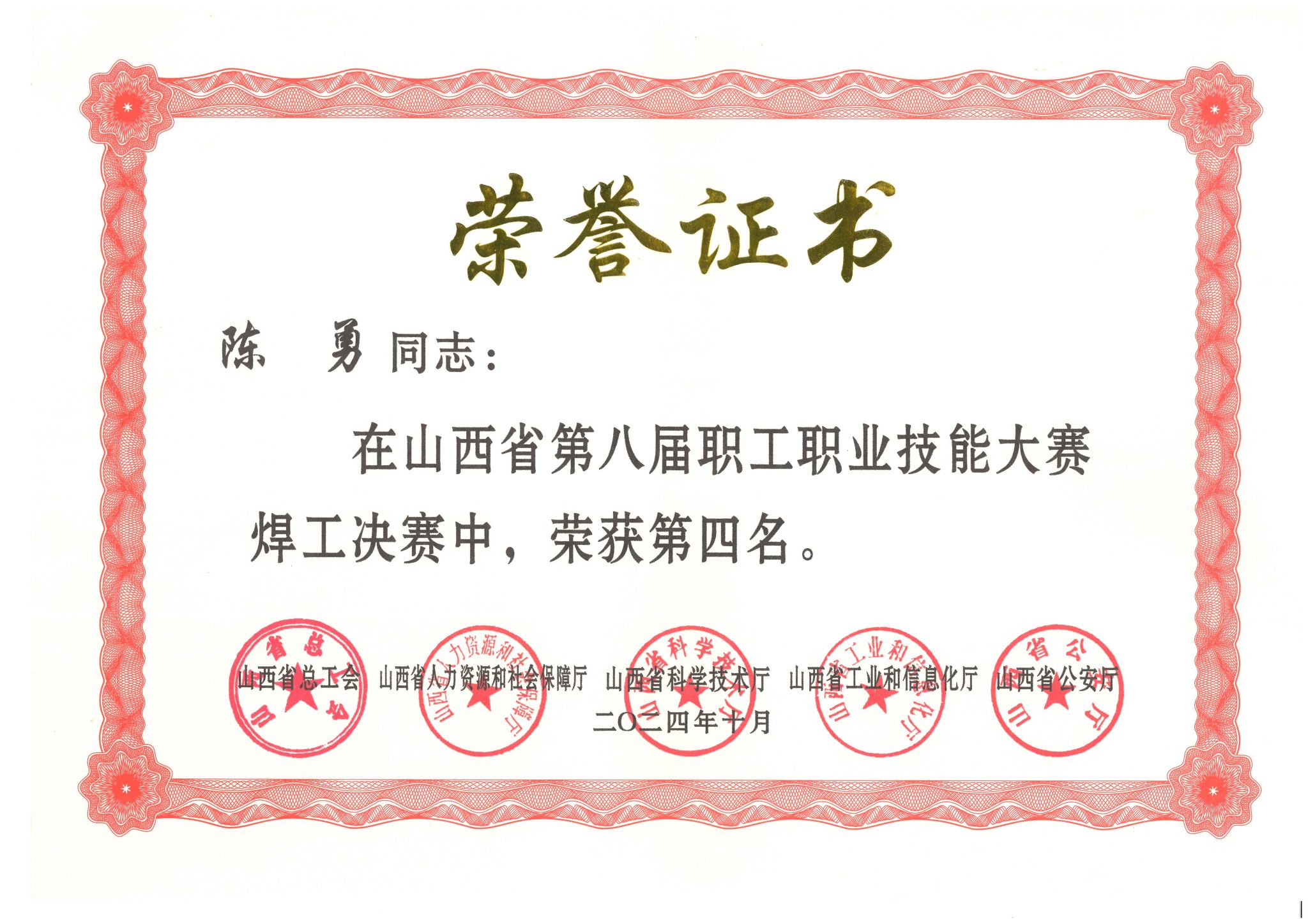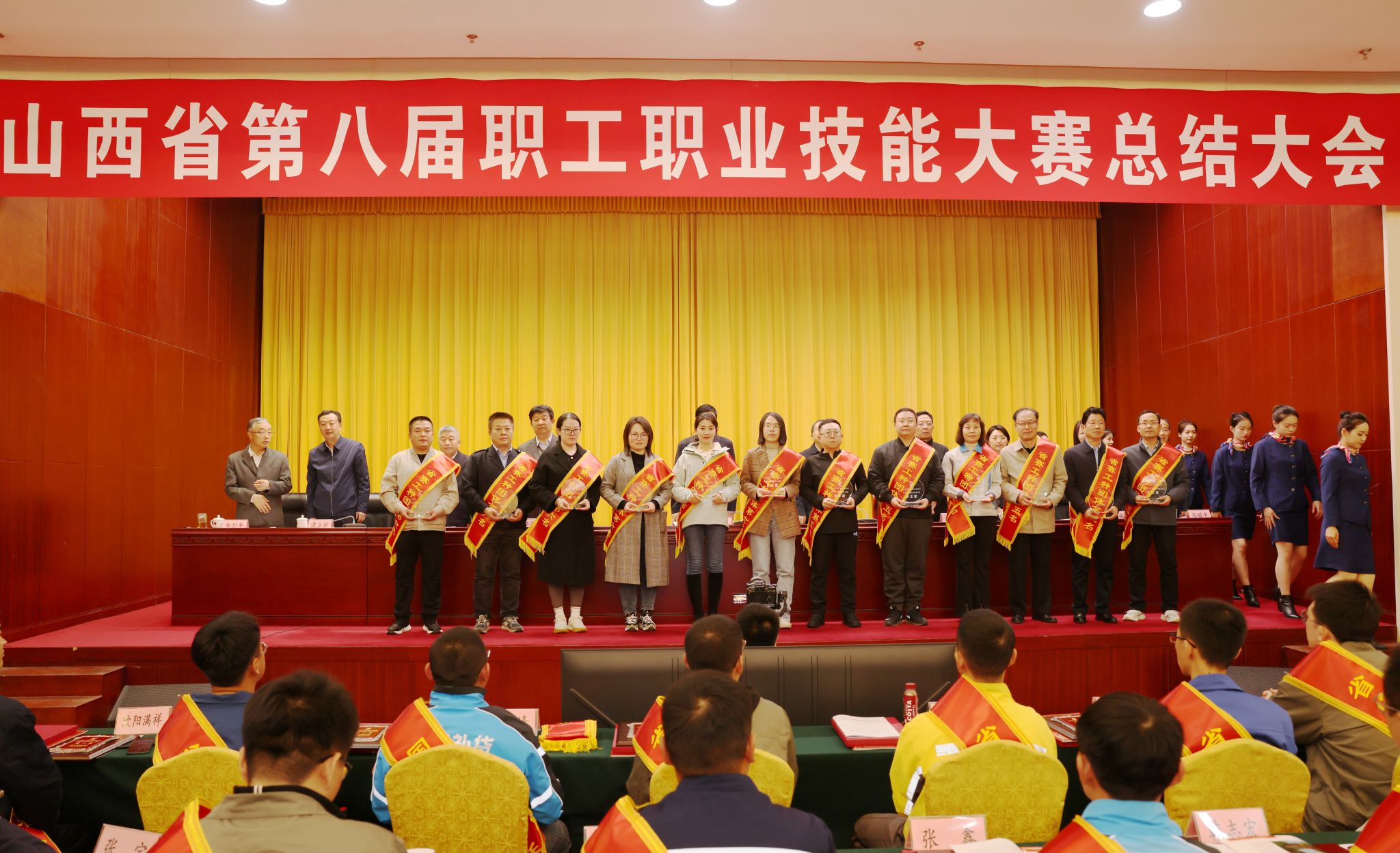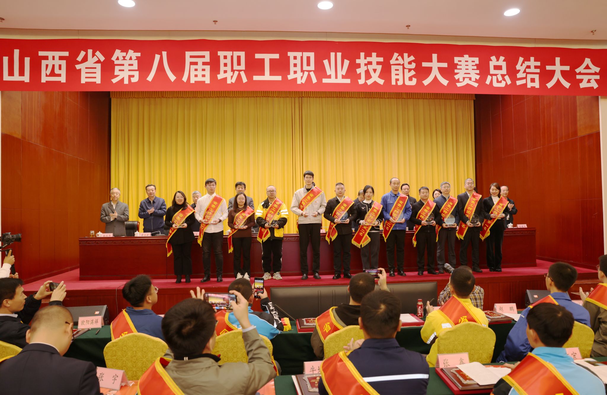 山西省第八屆職工職業(yè)技能大賽總結(jié)大會(huì)取得優(yōu)異成績(jī)的選手、教練組和組織單位2項(xiàng)集體獎(jiǎng)、3項(xiàng)個(gè)人獎(jiǎng)公司代表太原市榮獲焊工團(tuán)體第一名