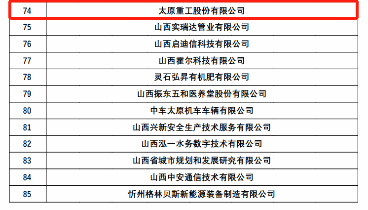 截至目前,太重集團(tuán)共有太原重工、軌道公司、重工工程公司、察右公司、數(shù)智公司、太重煤機(jī)、太重濱海、太重向明、太重榆液、太重榆液濟(jì)南公司、智奇公司、山西煤機(jī)12家公司入選高新技術(shù)企業(yè),成為引領(lǐng)裝備制造業(yè)轉(zhuǎn)型發(fā)展的“排頭兵”。