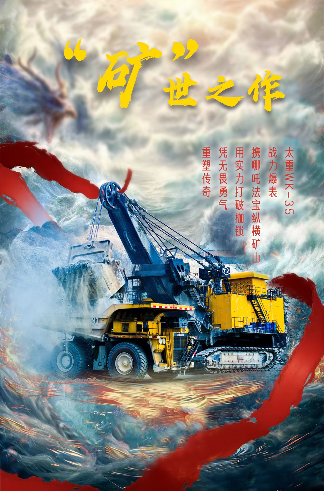 WK-35礦用機(jī)械正鏟式挖掘機(jī),是太重自主研制的大型露天礦山采裝設(shè)備。作為挖掘機(jī)的“左膀右臂”,鏟斗大小決定著作業(yè)效率,鏟斗質(zhì)量的好壞更是對抗堅(jiān)硬礦石的重要法寶。這款機(jī)型的鏟斗,采用大圓弧結(jié)構(gòu)設(shè)計,具備高強(qiáng)度與高耐磨性等特點(diǎn),整體設(shè)計簡潔高效,在耐用性與維修便捷性方面具有顯著優(yōu)勢,鏟斗“硬碰硬”的能力堪稱一絕。露天礦山所用到的電鏟設(shè)備,體積往往比較大,這款高達(dá)18米的WK-35電鏟配備先進(jìn)可靠的主驅(qū)動電機(jī),依托交流變頻控制驅(qū)動系統(tǒng),擁有了“混天綾”般的靈動與敏捷,在礦山作業(yè)現(xiàn)場仍然運(yùn)轉(zhuǎn)高效、輕松自如。如“風(fēng)火輪”般腳下生風(fēng)的履帶裝置履帶裝置是助力挖機(jī)行走在復(fù)雜工況的堅(jiān)實(shí)保障,這款挖掘機(jī)采用高位驅(qū)動,簡單來講,就是通過優(yōu)化履帶裝置結(jié)構(gòu)和驅(qū)動方式,使其運(yùn)行更加平穩(wěn),無論是轉(zhuǎn)彎還是爬坡,只要給它配齊這套“風(fēng)火履帶”,想去哪里就能去哪里。作為露天礦山開采的得力干將,WK-35電鏟恰似手握“火尖槍” 的創(chuàng)新勇士,盡顯勇猛無敵之姿。這款機(jī)型是公司多年來集設(shè)計、工藝、制作等成功經(jīng)驗(yàn)于一身的寶藏產(chǎn)品,搭載大量國內(nèi)外先進(jìn)技術(shù),可適用于大型露天煤礦、鐵礦及有色金屬礦山的剝離和采裝作業(yè)。在創(chuàng)新方面,采用了新一代的遠(yuǎn)程操作技術(shù),可有效改善操作者的工作環(huán)境,為綠色礦山開采注入全新活力。不認(rèn)命的態(tài)度、不服輸?shù)母蓜牛悄倪傅男叛?,也是我們在礦山領(lǐng)域創(chuàng)新研發(fā)、推廣銷售的熱情和動力。致力于為用戶量身打造礦山領(lǐng)域 “一攬子” 解決方案的太重,就是要憑借著一股闖勁拼勁,實(shí)現(xiàn)露天開采的無人值守、無人操作以及產(chǎn)品全生命周期的智能運(yùn)維服務(wù),為用戶創(chuàng)造源源不斷的價值,向著更高領(lǐng)域逐夢攀登!