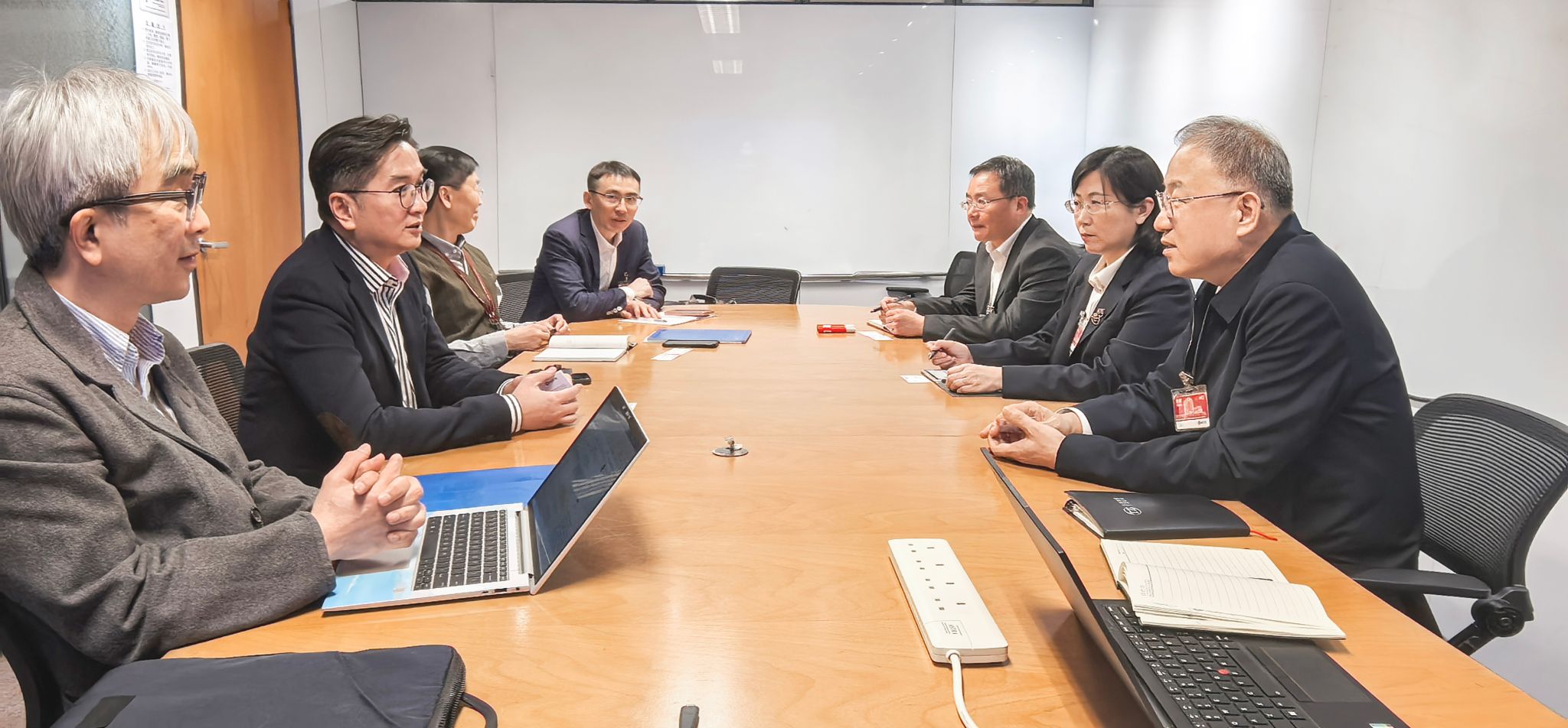 港鐵公司是香港鐵路交通行業(yè)的龍頭企業(yè),其鐵路網(wǎng)絡(luò)覆蓋全港,為乘客提供便捷、高效的過境及城際交通服務(wù),與太重在軌道交通領(lǐng)域具有良好的合作基礎(chǔ)。座談中,韓珍堂對(duì)港鐵公司長(zhǎng)期以來的支持和信任表示感謝。他說,太重在軌道交通領(lǐng)域深耕多年,構(gòu)建起全流程智能制造體系,成功獲評(píng)全球軌道交通行業(yè)首座卓越制造“燈塔工廠”。港鐵公司是全球軌道交通運(yùn)營(yíng)的標(biāo)桿企業(yè),雙方在軌道交通網(wǎng)絡(luò)建設(shè)、產(chǎn)品國(guó)產(chǎn)化替代等方面合作空間廣闊、潛力巨大,太重將以此次洽談為契機(jī),持續(xù)加快產(chǎn)品技術(shù)創(chuàng)新步伐,完善全生命周期服務(wù)體系,與用戶攜手并進(jìn),共同助力交通強(qiáng)國(guó)建設(shè)。李劍雄對(duì)韓珍堂一行的到來表示熱烈歡迎,并對(duì)太重的技術(shù)創(chuàng)新優(yōu)勢(shì)和智能制造實(shí)力給予高度評(píng)價(jià),期待與太重建立更深入的合作關(guān)系,進(jìn)一步深化在技術(shù)標(biāo)準(zhǔn)對(duì)接、本土化服務(wù)等方面友好合作,共同探索軌道交通產(chǎn)業(yè)智慧化發(fā)展新路徑。