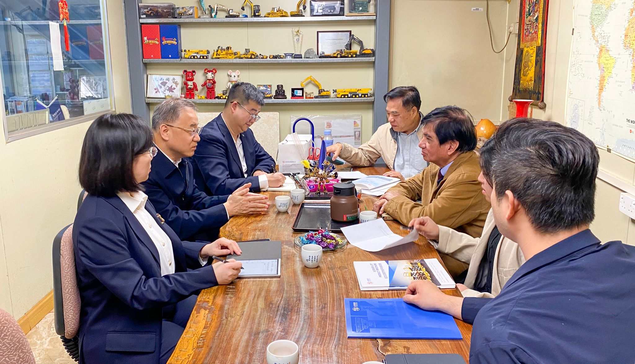韓珍堂走進(jìn)用戶設(shè)備存儲(chǔ)場(chǎng)地和施工現(xiàn)場(chǎng),詳細(xì)了解了工程機(jī)械海外市場(chǎng)的新需求、新業(yè)態(tài),并深入探討了國(guó)際市場(chǎng)開拓的新思路、新方向。他說,公司堅(jiān)持全球化戰(zhàn)略和國(guó)際化視野,緊抓海外市場(chǎng)機(jī)遇,持續(xù)優(yōu)化國(guó)際營(yíng)銷體系,推動(dòng)太重品牌揚(yáng)帆出海、決勝全球。香港是我國(guó)對(duì)外開放的橋頭堡,也是太重加速國(guó)際化進(jìn)程的重要窗口。希望通過此次交流,推動(dòng)雙方在信息共享、市場(chǎng)開拓、后市場(chǎng)服務(wù)等方面深度合作,在世界舞臺(tái)共同唱響中國(guó)制造!黃方素對(duì)太重取得的各項(xiàng)成就表示欽佩。他說,太重在工程起重機(jī)、挖掘機(jī)、高空作業(yè)平臺(tái)等產(chǎn)品領(lǐng)域擁有雄厚的技術(shù)優(yōu)勢(shì)和前瞻性的戰(zhàn)略布局,未來發(fā)展不可限量。太重此次到訪,對(duì)彩杰公司的業(yè)務(wù)布局和市場(chǎng)發(fā)展有著重要意義。彩杰公司將充分發(fā)揮自身資源優(yōu)勢(shì),與太重加強(qiáng)業(yè)務(wù)溝通,創(chuàng)新合作模式,加速拓展海外市場(chǎng)渠道,助力太重品牌在國(guó)際化進(jìn)程中走出更廣闊的天地。集團(tuán)公司相關(guān)單位負(fù)責(zé)人陪同調(diào)研。