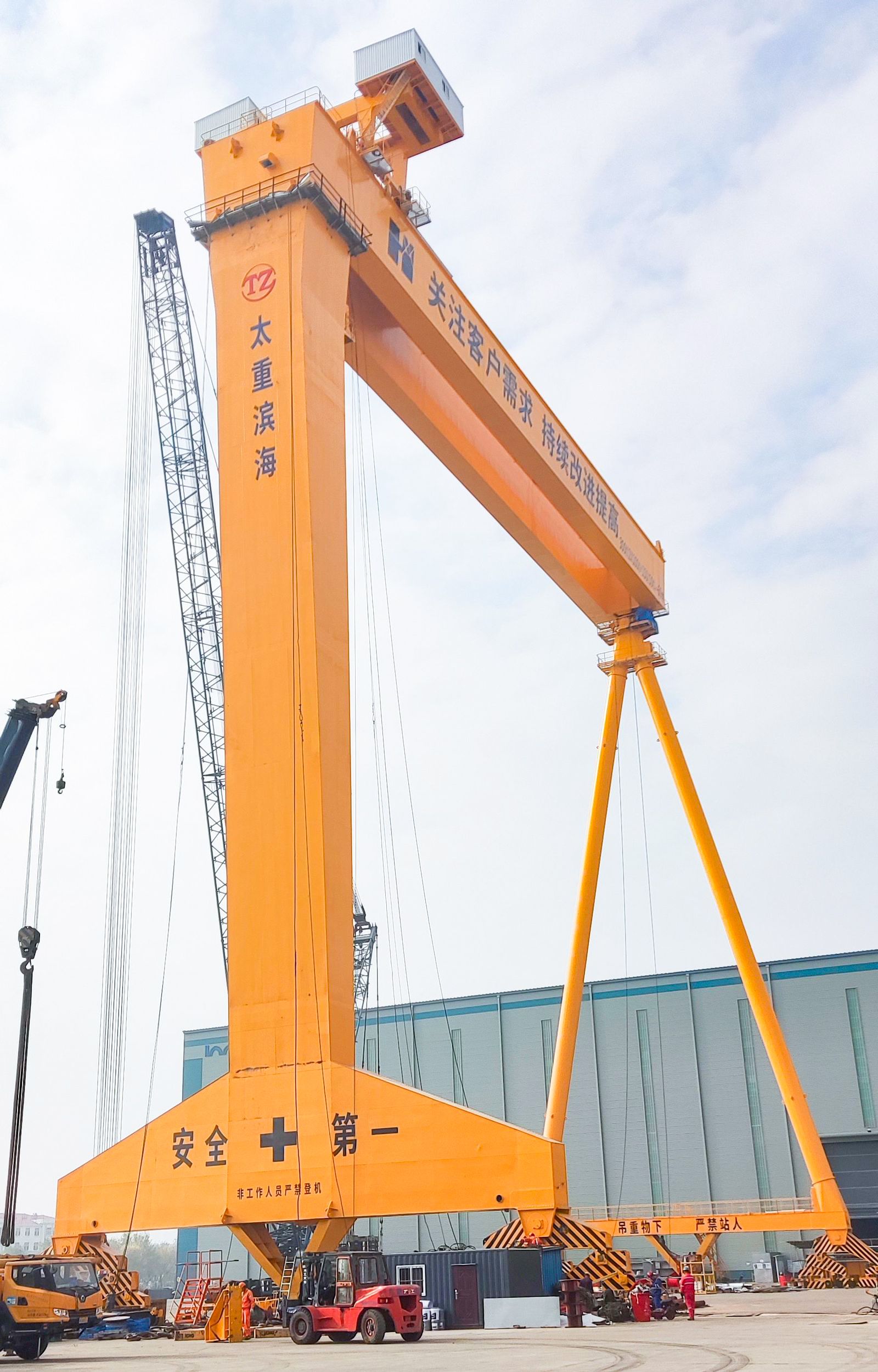 身披太重logo的造船門式起重機