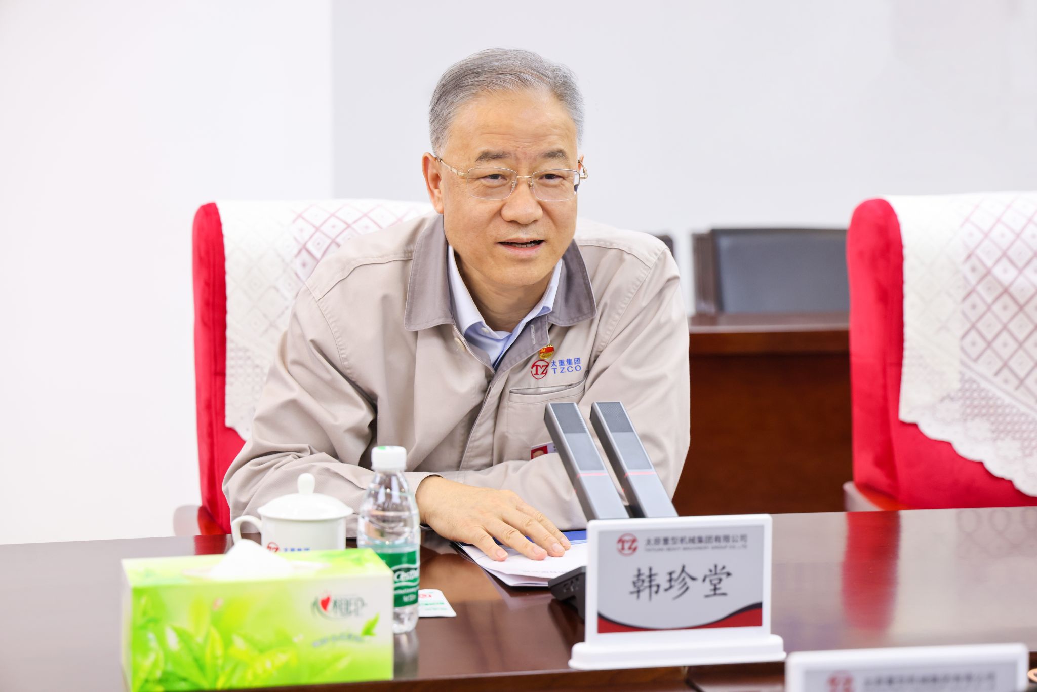 韓珍堂對高峰一行的到來表示熱烈歡迎,并詳細介紹了太重的發(fā)展歷程、企業(yè)文化以及未來發(fā)展規(guī)劃。他說,太重作為“共和國長子”,肩負(fù)大國重器的使命擔(dān)當(dāng),與祖國同向同行。轉(zhuǎn)型升級以來,太重開啟了氣勢如虹的改革、創(chuàng)新和發(fā)展,進入了追趕超越的新階段,正逐步向創(chuàng)造引領(lǐng)不斷前行。近年來,太重持續(xù)加大研發(fā)投入,構(gòu)建起“一重點、一中心、多基地”技術(shù)研發(fā)體系,創(chuàng)新優(yōu)勢不斷轉(zhuǎn)化為發(fā)展勝勢,以“高端化、智能化、綠色化、國產(chǎn)化”為產(chǎn)品定位,不斷推陳出新,越來越多的用戶用上了國產(chǎn)化精品。同時,太重堅持全球化戰(zhàn)略和國際化視野,深入推進國內(nèi)外重點區(qū)域公司和維護中心建設(shè),推動太重品牌揚帆出海。未來,希望能與太鋼進一步開展多層次、寬領(lǐng)域合作,充分利用行業(yè)領(lǐng)先技術(shù)和地域優(yōu)勢,“一南一北”協(xié)同配合,深度合作推動山西制造業(yè)高質(zhì)量發(fā)展,為譜寫中國式現(xiàn)代化山西篇章作出更大貢獻。