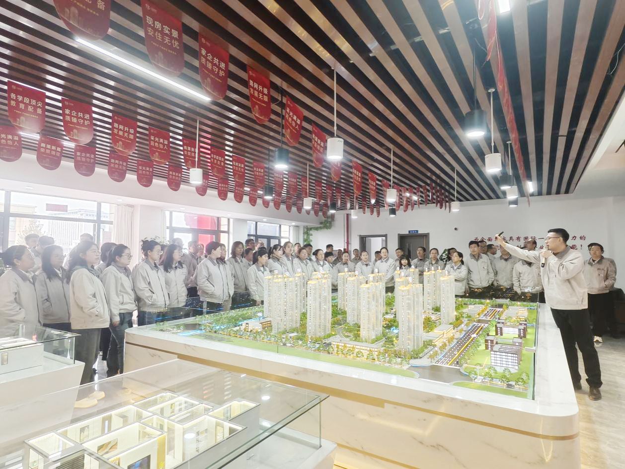 在沙盤展示區(qū),工作人員詳細(xì)講述項(xiàng)目的區(qū)位優(yōu)勢與配套規(guī)劃。從127㎡-190㎡南北通透大三居、大四居全明戶型設(shè)計(jì),到智能安防系統(tǒng)的科技賦能;從高端園林景觀到童夢樂園建設(shè),職工們仔細(xì)聆聽,對“出門即上班、下班即回家”的產(chǎn)城融合生活充滿期待。