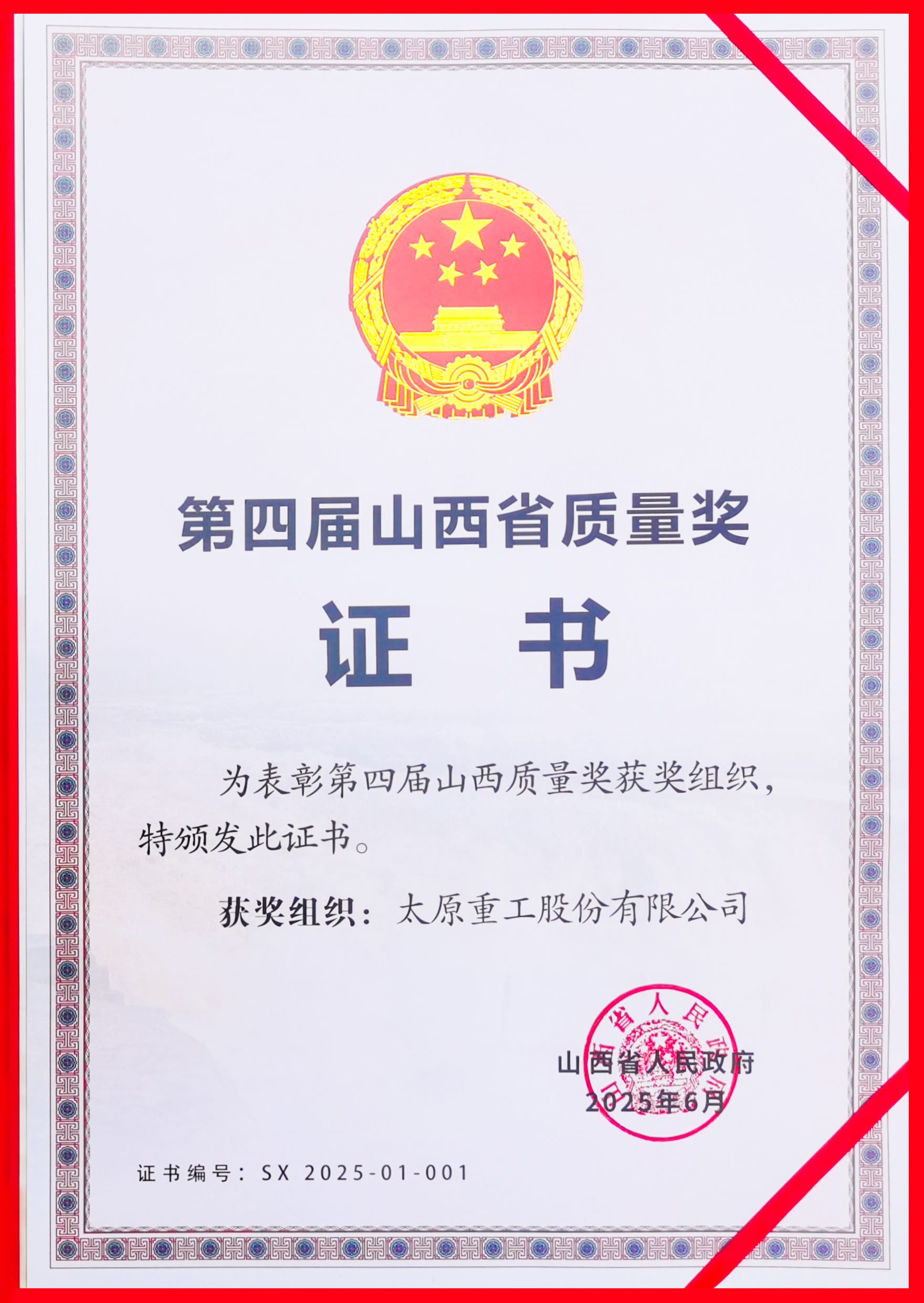 一份榮譽(yù),見證太重把質(zhì)量視為企業(yè)“生命線”、狠抓質(zhì)量管理提升的卓越成果。公司將再接再厲加快質(zhì)量提升,全力打造太重標(biāo)準(zhǔn)、太重質(zhì)量、太重品牌,為加快發(fā)展新質(zhì)生產(chǎn)力、推進(jìn)新型工業(yè)化貢獻(xiàn)更多“太重精品”。