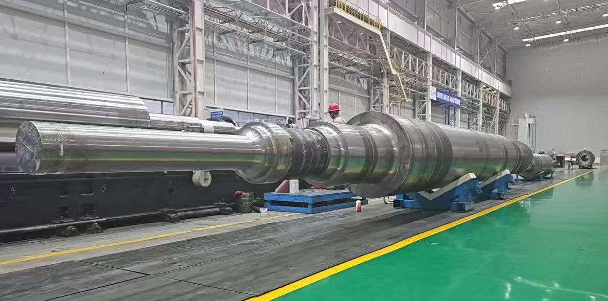 這類轉子屬于細長軸類鍛件,截面變化大,長徑比超過12,在熱處理中極易出現(xiàn)變形。為解決這一行業(yè)公認難題,設備團隊對熱處理設備進行“量身改造”,突破設備極限長度,確保超長轉子在熱處理過程中受熱均勻、變形可控;技術團隊則如同“工藝雕塑家”,在以往經驗的基礎上,系統(tǒng)梳理出一套專為發(fā)電機轉子定制的制造工藝體系,精準攻克了材料均勻性、熱處理變形控制、磁性達標、精度保持等一系列難關,尤其是在無損檢測環(huán)節(jié),實現(xiàn)了“火眼金睛”般的精準探傷,為產品的可靠性筑起最后一道堅實防線。最終,在團隊的緊密協(xié)作下,首支轉子試制成功,各項性能指標均滿足設計要求。