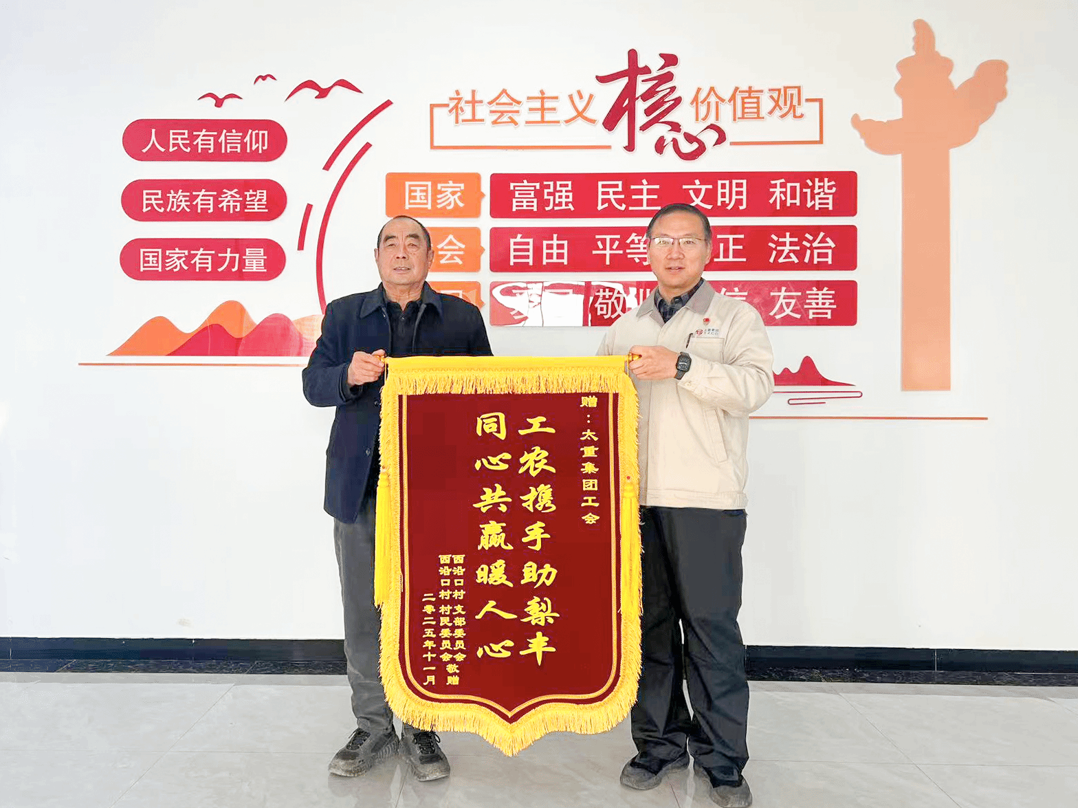 “多虧了你們,從教技術(shù)、建冷庫到幫銷售,咱們玉露香梨的每一步都離不開工作隊的幫扶!”近日,太重駐村工作隊收到西沿口村種植戶王計元送來的錦旗,“工農(nóng)攜手助梨豐 同心共贏暖人心”的字樣滿含深情,印證的是幫扶工作的扎實成效,更是企業(yè)與鄉(xiāng)村心手相牽的溫暖情誼。