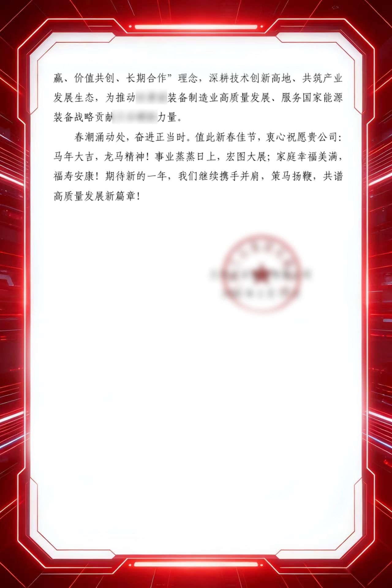 “貴公司以誠信為基、以品質(zhì)為魂,我們風(fēng)雨同舟、攜手共進。”