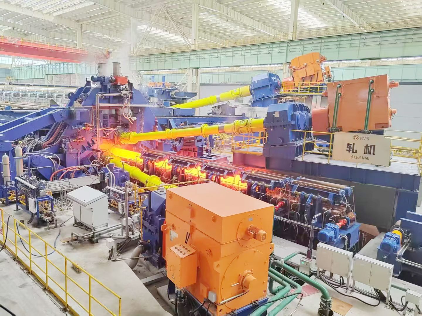 這是太重自主研發(fā)的國內(nèi)首條、全球最大的Φ530mm三輥斜軋無縫鋼管生產(chǎn)線,已在用戶現(xiàn)場(chǎng)正式投產(chǎn)。它標(biāo)志著我國在大口徑中厚壁無縫鋼管裝備領(lǐng)域取得重大突破,也填補(bǔ)了國際市場(chǎng)的一項(xiàng)空白。自此,太重?zé)o縫鋼管設(shè)備在全球市場(chǎng)上有了叫板的底氣。