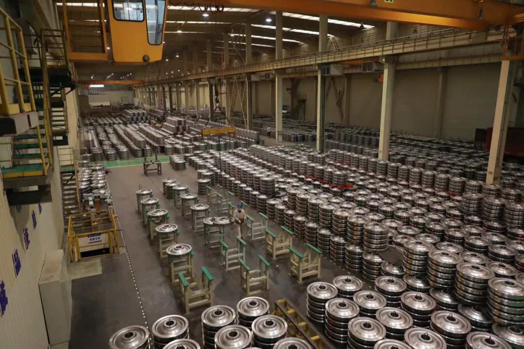 這是一條年產(chǎn)車輪40萬片的生產(chǎn)線,也是目前國內(nèi)自動(dòng)化程度最高的車輪生產(chǎn)線。從這里生產(chǎn)出來的車輪,可用于高鐵、地鐵、大型客車等。