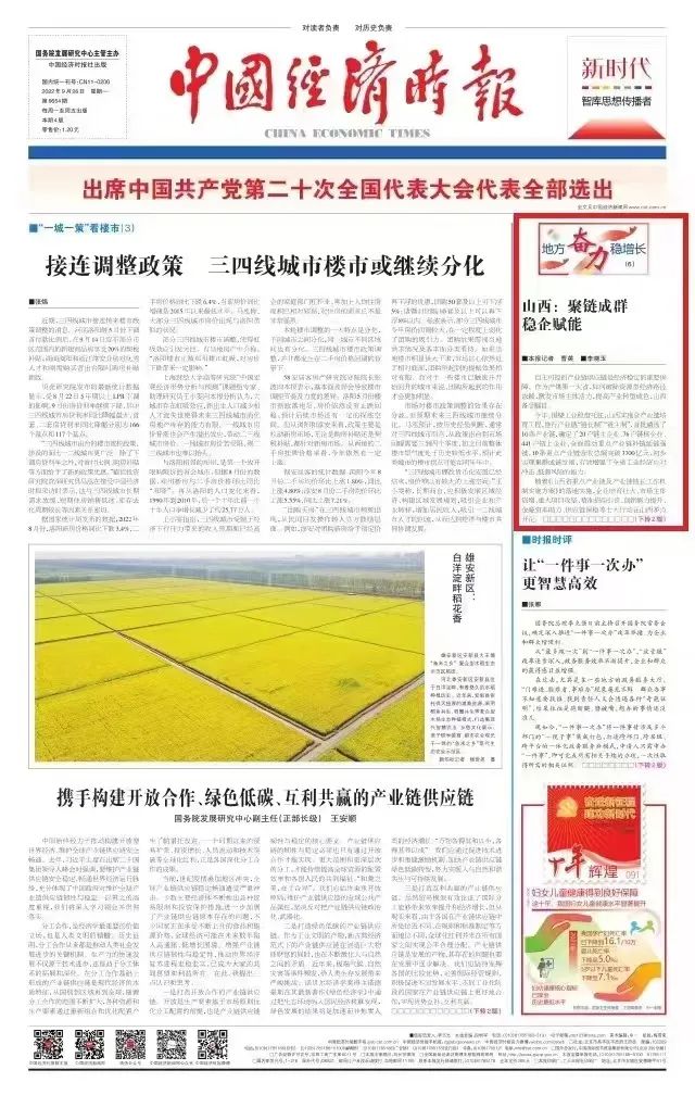 今日,中國經(jīng)濟(jì)時(shí)報(bào)頭版以《山西:聚鏈成群 穩(wěn)企賦能》為題,重點(diǎn)關(guān)注太重集團(tuán)憑借在高端裝備制造和風(fēng)電裝備領(lǐng)域的突出優(yōu)勢(shì),成為山西省唯一的“雙鏈主”企業(yè),主動(dòng)發(fā)揮“鏈主”企業(yè)的引領(lǐng)支撐作用,精準(zhǔn)延鏈補(bǔ)鏈強(qiáng)鏈,推動(dòng)形成全省“一企帶一鏈、一鏈帶一片”的產(chǎn)業(yè)發(fā)展格局。