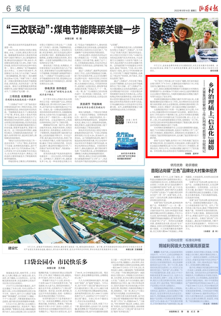 今日山西日報以《鄉(xiāng)村治理插上“信息化”翅膀》為題,報道了太重集團積極履行國有企業(yè)社會責(zé)任,依托企業(yè)管理經(jīng)驗,將網(wǎng)格化服務(wù)管理工作“精細化、信息化、智能化”,助力基層治理能力高效提升,讓鄉(xiāng)村治理,因企業(yè)信息化手段賦能變得高效。