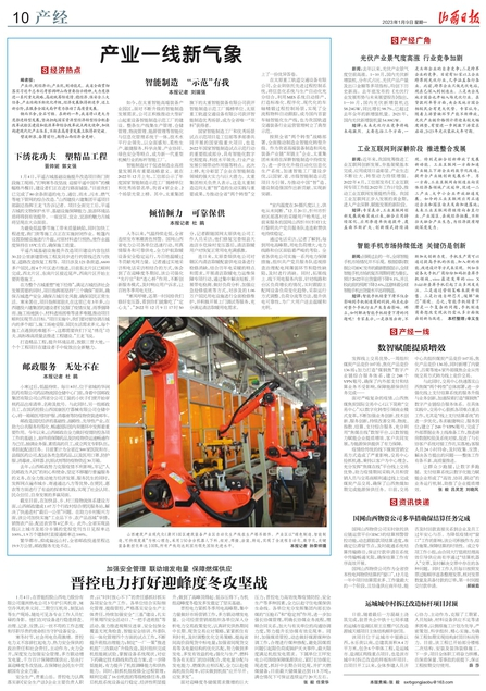 1月9日,山西日報刊發(fā)《產(chǎn)業(yè)一線新氣象》文章,報道太重集團深耕智能制造,厚植創(chuàng)新發(fā)展,為推動全省“兩個轉(zhuǎn)型”交上了優(yōu)異答卷。深化改革以來,公司把創(chuàng)新作為引領(lǐng)發(fā)展的第一動力,大力發(fā)展智能設(shè)計、智能制造、智能產(chǎn)品和智能服務(wù),以市場為導向,以自主研發(fā)為基礎(chǔ),發(fā)揮公司在科技創(chuàng)新和機械制造方面的優(yōu)勢,通過高技術(shù)、高質(zhì)量獲取競爭優(yōu)勢,為用戶提供智能、安全、高效的產(chǎn)品。公司作為我省“雙鏈主”企業(yè),加強協(xié)同創(chuàng)新,推動行業(yè)發(fā)展,打造具有國際一流競爭力的現(xiàn)代智能裝備制造企業(yè),為推動中國“智”造、建設(shè)制造強國作貢獻。下面對太重相關(guān)內(nèi)容進行轉(zhuǎn)載。