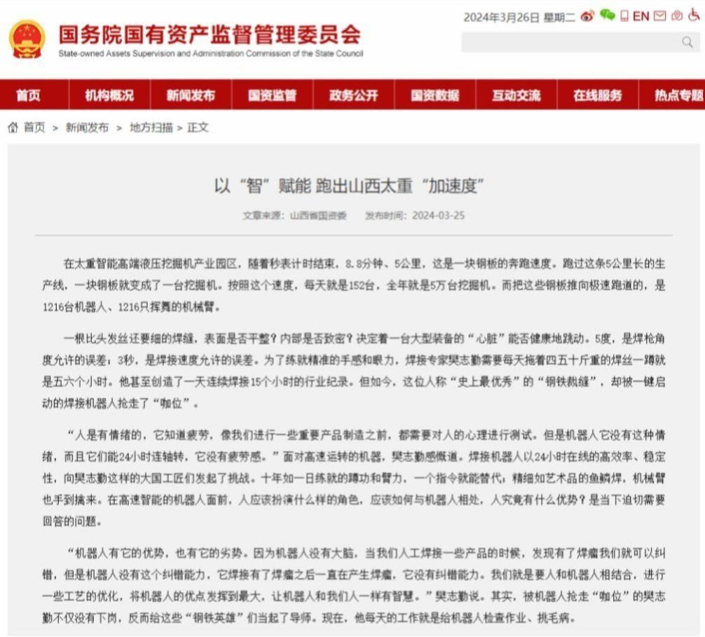 在人工智能時(shí)代,AI以“智”賦能,讓太重集團(tuán)實(shí)現(xiàn)了研發(fā)、制造、銷售、物流、售后全流程的數(shù)字“智造”。而生產(chǎn)方式的變革,也為這個(gè)創(chuàng)造了500多項(xiàng)中國和世界第一的新中國第一座重型機(jī)械廠,再一次刷新速度、創(chuàng)造奇跡。