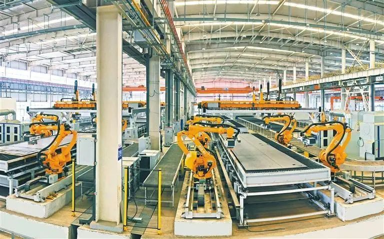 距離老廠區(qū)50公里外,山西轉(zhuǎn)型綜改示范區(qū)瀟河產(chǎn)業(yè)園區(qū)內(nèi),太重智能高端裝備產(chǎn)業(yè)園已拔地而起。在這里,太重所有裝備制造都能實現(xiàn)以工序為單位的連續(xù)生產(chǎn)。各種機器人設(shè)備夜以繼日“上班”,智能導(dǎo)引搬運車來回穿梭、自動取送貨,一張鋼板經(jīng)過全流程生產(chǎn)線后,即可最大程度地切割出各類高質(zhì)量零部件,智能產(chǎn)線上“只見物,不見人”。