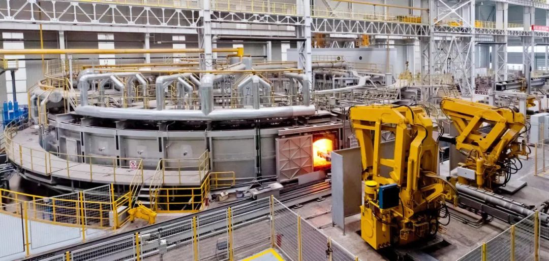 6月20日,軌道公司車輪廠二線上,大型智能環(huán)形加熱爐正對車輪鋼坯進行自動精準加熱。