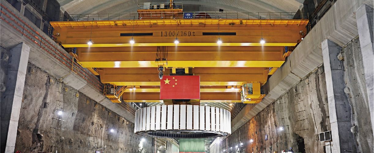 2021年6月28日,太重集團(tuán)生產(chǎn)制造的1300噸橋式起重機(jī),順利完成了三峽白鶴灘水電站全球首臺(tái)百萬(wàn)千瓦水電機(jī)組吊裝任務(wù)。
